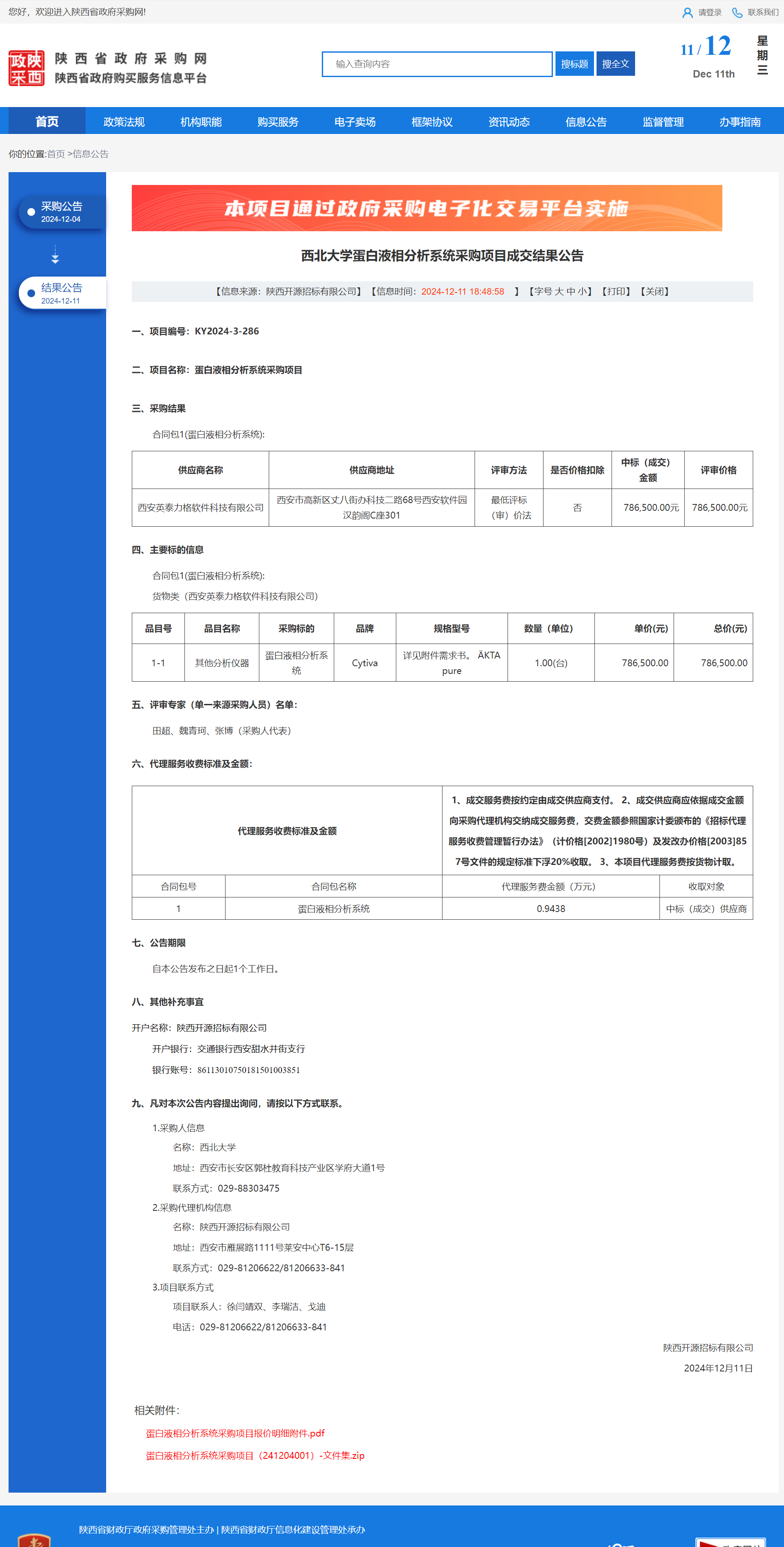 古天乐代言太阳集团城网址蛋白液相分析系统采购项目成交结果公告 作者:采购与招标办公室 编辑: 时间:2024-12-11 原公告链接:https://www.ccgp-shaanxi.gov.cn/freecms/site/shaanxi/ggxx/info/2024/8a69c5a59218576d0193b5311e001b2d.html?noticeType=001023¬iceId=24caaa3b-b7af-11ef-8063-08c0eb20c666