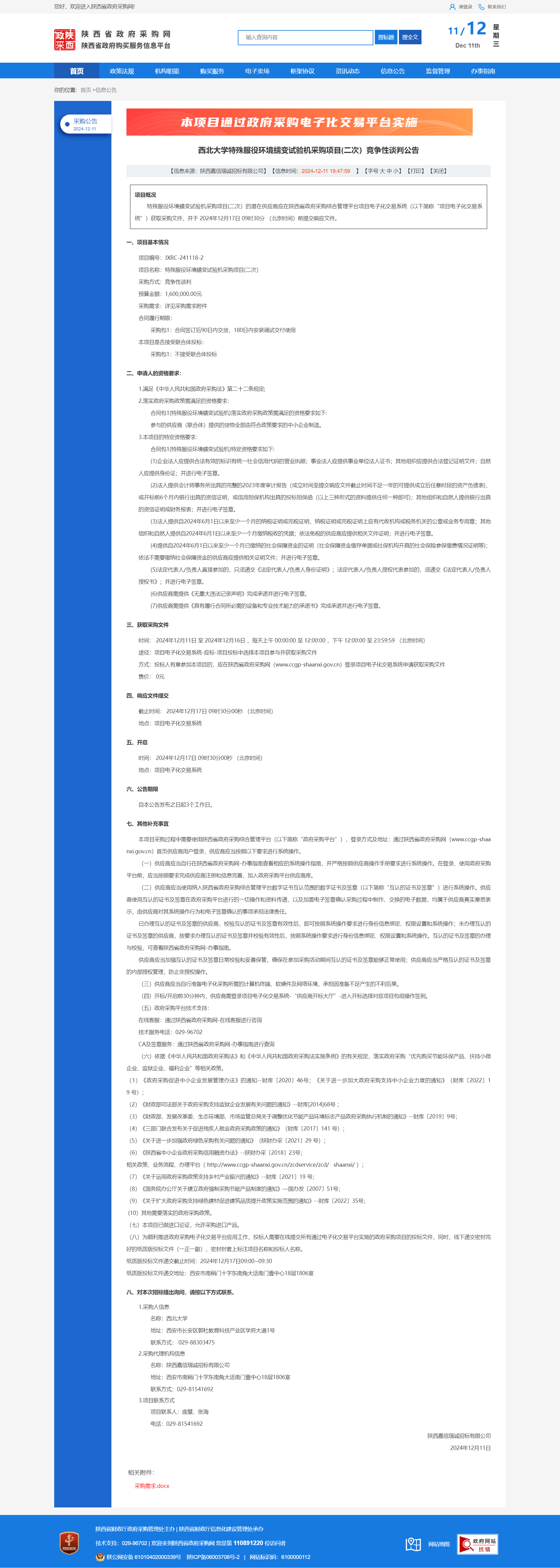 古天乐代言太阳集团城网址特殊服役环境蠕变试验机采购项目(二次)竞争性谈判公告 作者:采购与招标办公室 编辑: 时间:2024-12-11 原公告链接:https://www.ccgp-shaanxi.gov.cn/freecms/site/shaanxi/ggxx/info/2024/8a69c5a59218576d0193b572f0492761.html?noticeType=001013¬iceId=632dd20f-b7b7-11ef-8063-08c0eb20c666