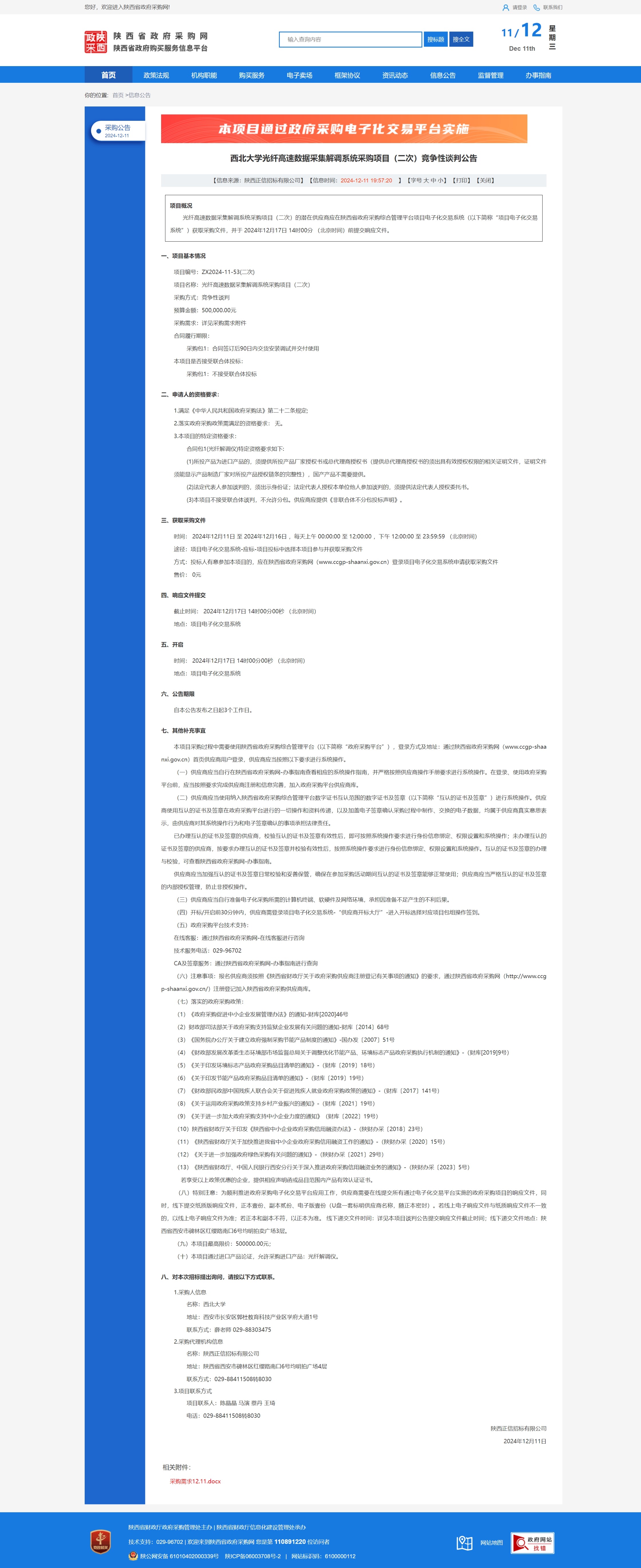 古天乐代言太阳集团城网址光纤高速数据采集解调系统采购项目(二次)竞争性谈判公告 作者: 编辑:薛利娟 时间:2024-12-11 原公告链接:https://www.ccgp-shaanxi.gov.cn/freecms/site/shaanxi/ggxx/info/2024/8a69c251921857370193b57e9b8200ae.html?noticeType=001013¬iceId=b1b907cc-b7b8-11ef-8063-08c0eb20c666