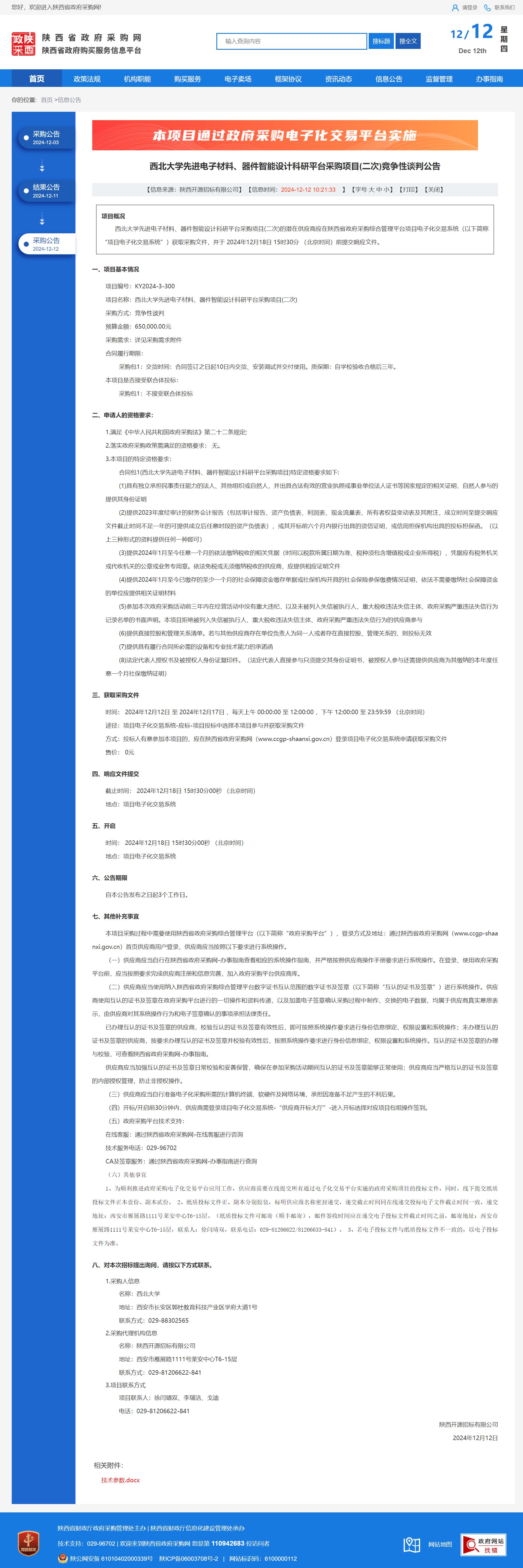 古天乐代言太阳集团城网址先进电子材料、器件智能设计科研平台采购项目(二次)竞争性谈判公告