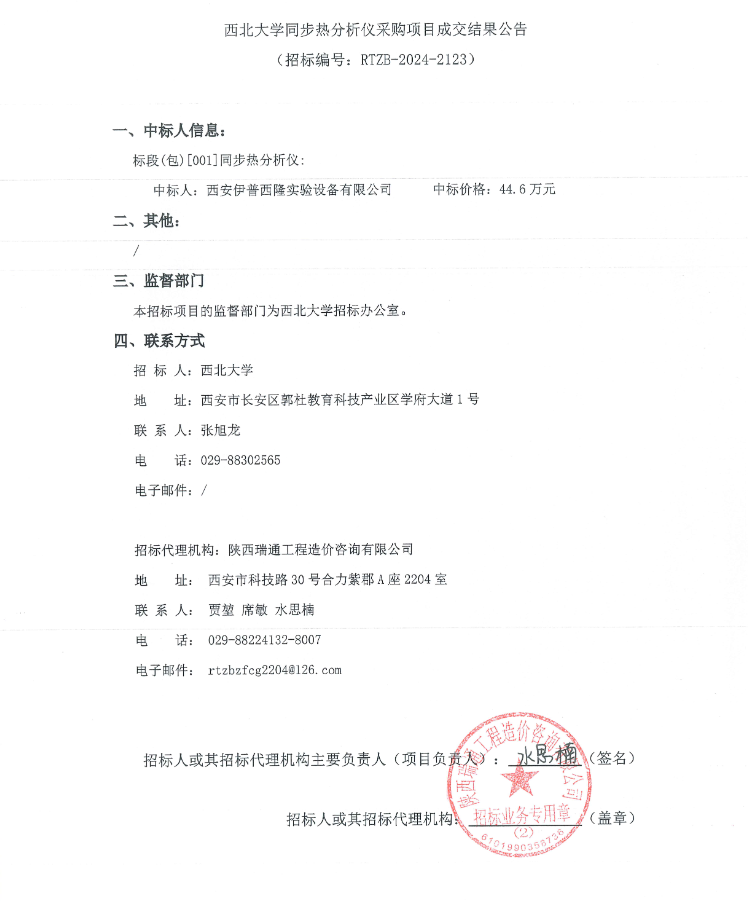 古天乐代言太阳集团城网址同步热分析仪采购项目成交结果公告