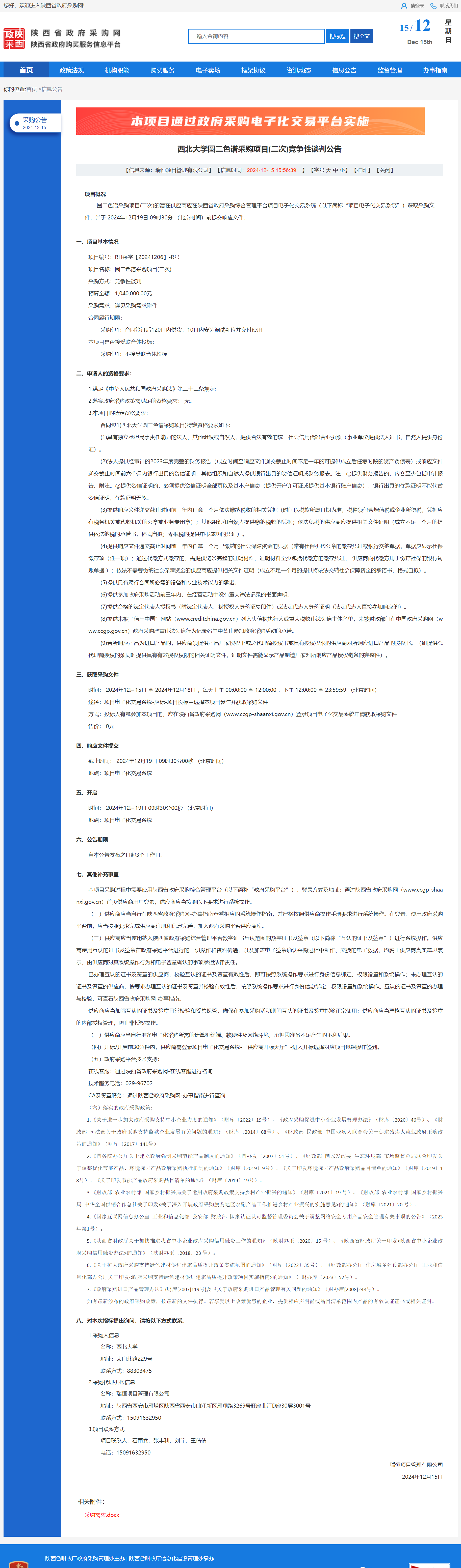 古天乐代言太阳集团城网址圆二色谱采购项目(二次)竞争性谈判公告 作者:采购与招标办公室 编辑: 时间:2024-12-15 原公告链接:https://www.ccgp-shaanxi.gov.cn/freecms/site/shaanxi/ggxx/info/2024/8a69c44e9218572b0193c94ad4d5586c.html?noticeType=001013¬iceId=bf74a89c-babb-11ef-8063-08c0eb20c666