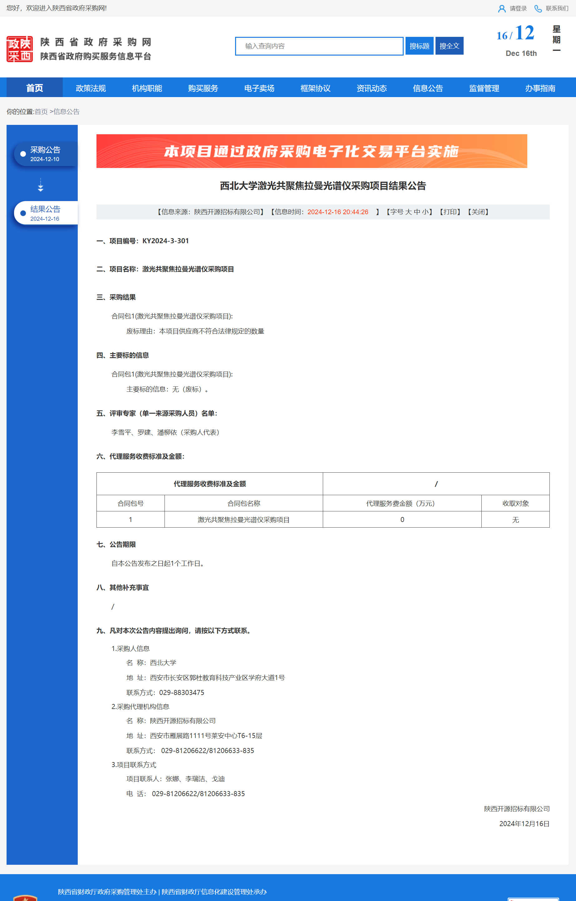 古天乐代言太阳集团城网址激光共聚焦拉曼光谱仪采购项目结果公告 作者:采购与招标办公室 编辑: 时间:2024-12-16 原公告链接:https://www.ccgp-shaanxi.gov.cn/freecms/site/shaanxi/ggxx/info/2024/8a69c5a59218576d0193cf7935a32c29.html?noticeType=001006¬iceId=1c92edd7-bbad-11ef-8063-08c0eb20c666