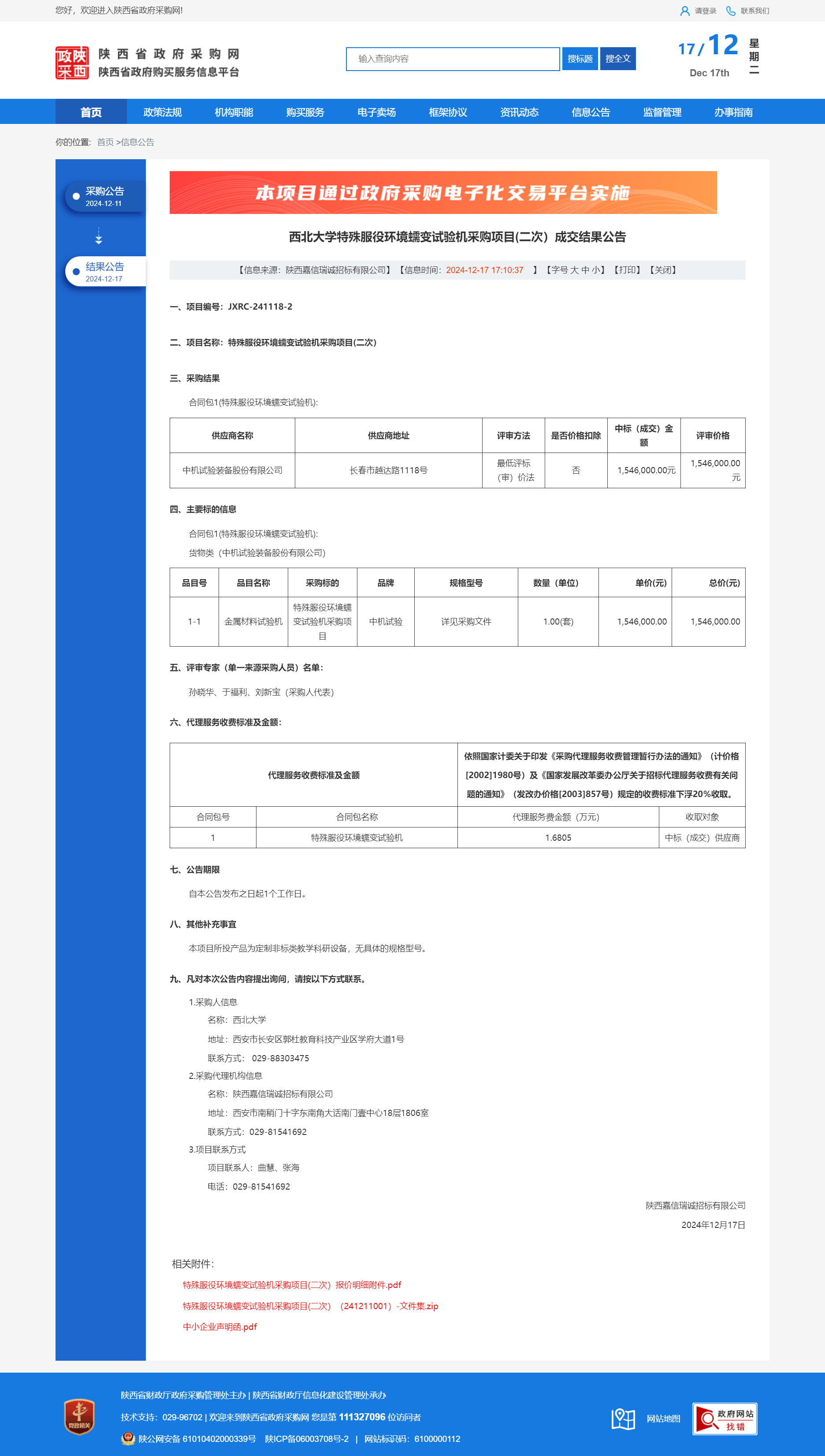 古天乐代言太阳集团城网址特殊服役环境蠕变试验机采购项目(二次)成交结果公告 作者:采购与招标办公室 编辑: 时间:2024-12-17 原公告链接:https://www.ccgp-shaanxi.gov.cn/freecms/site/shaanxi/ggxx/info/2024/8a69c251921857370193d3cba5716502.html?noticeType=001023¬iceId=69320abb-bc58-11ef-8063-08c0eb20c666