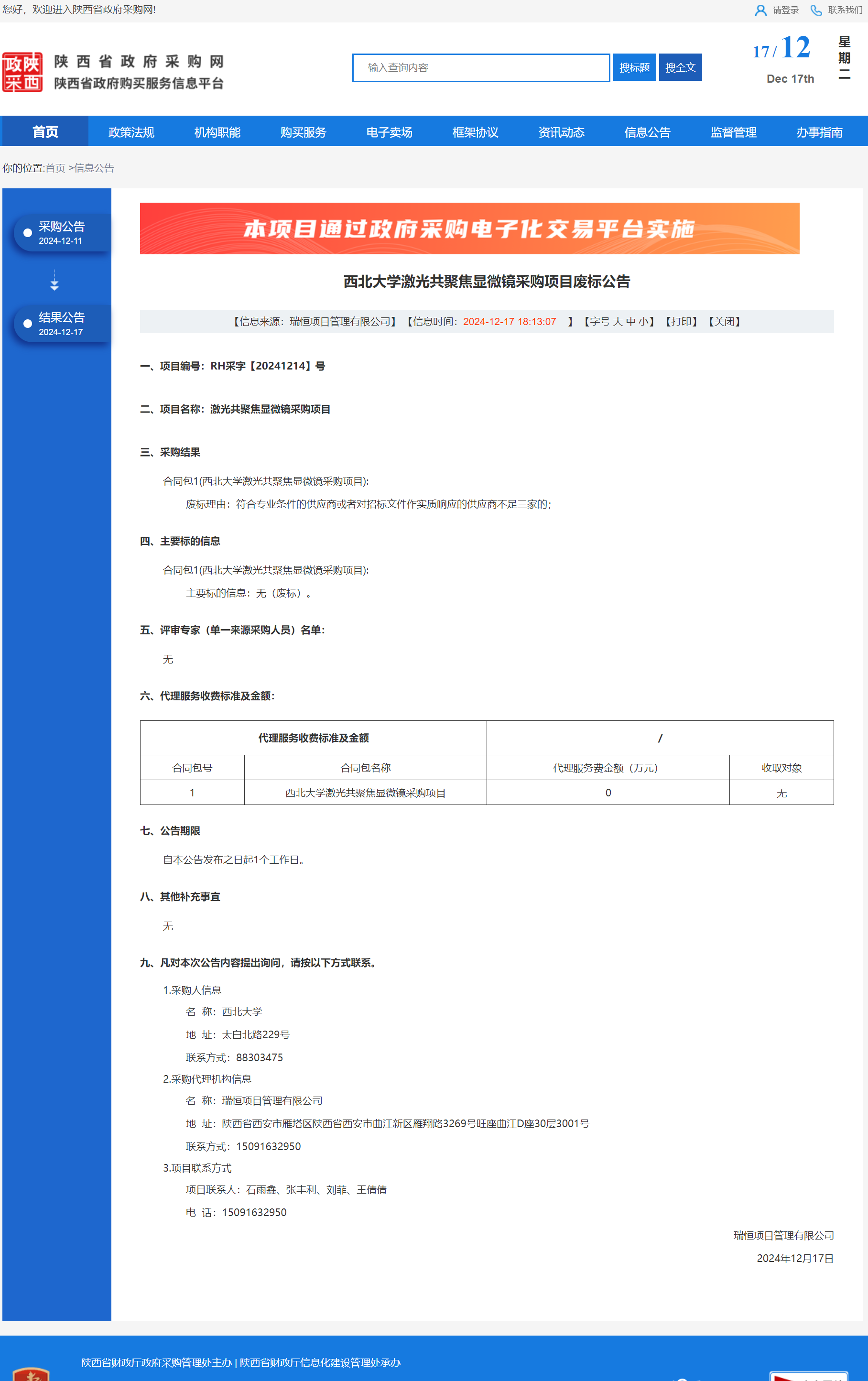 古天乐代言太阳集团城网址激光共聚焦显微镜采购项目废标公告 作者:采购与招标办公室 编辑: 时间:2024-12-17 原公告链接:https://www.ccgp-shaanxi.gov.cn/freecms/site/shaanxi/ggxx/info/2024/8a69c5a59218576d0193d411ecee4f38.html