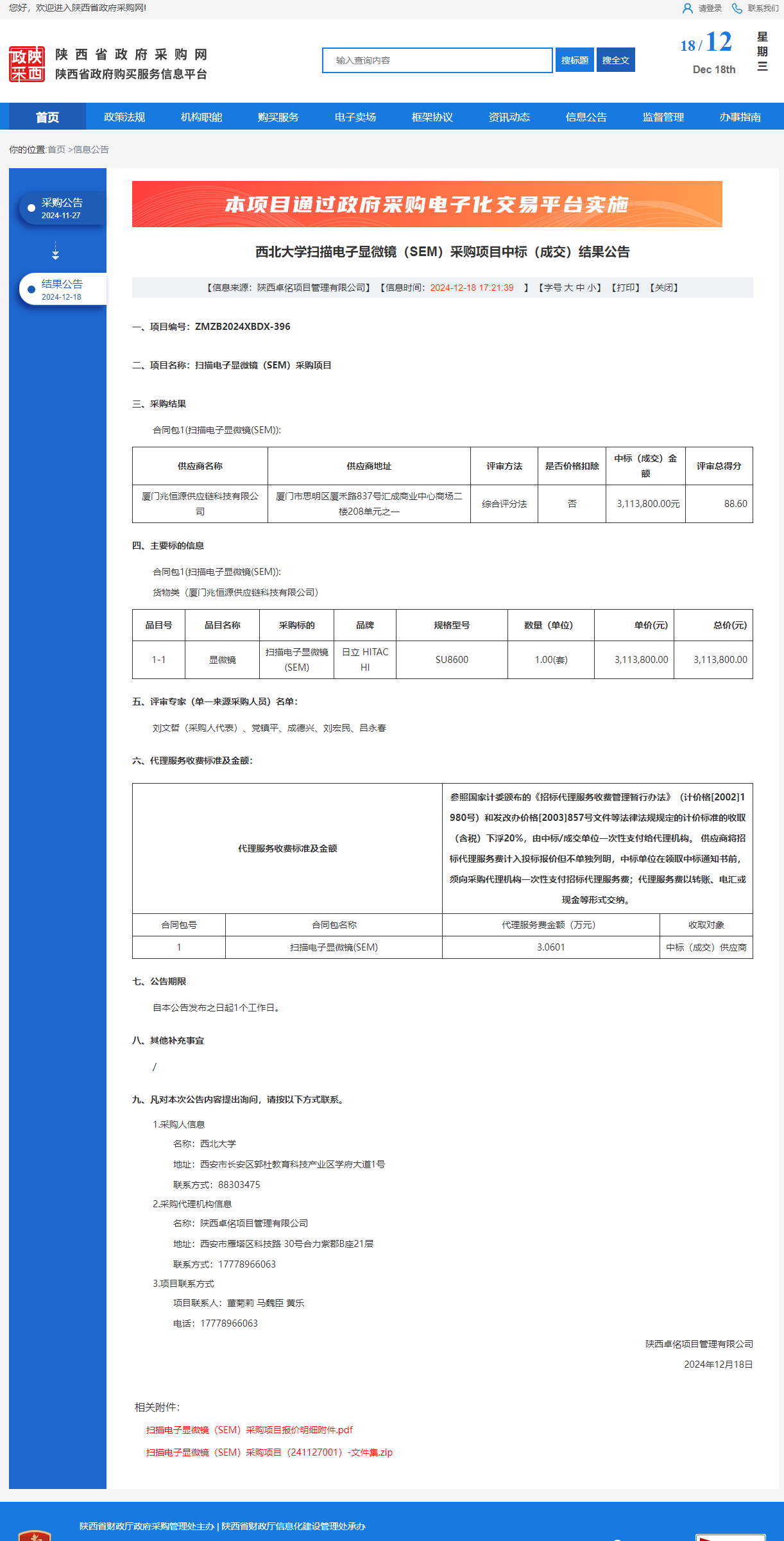古天乐代言太阳集团城网址扫描电子显微镜(SEM)采购项目中标(成交)结果公告 作者:采购与招标办公室 编辑: 时间:2024-12-18 原公告链接:https://www.ccgp-shaanxi.gov.cn/freecms/site/shaanxi/ggxx/info/2024/8a69c95d921859f00193d90183470ad8.html?noticeType=001021¬iceId=1e709926-bd23-11ef-8063-08c0eb20c666