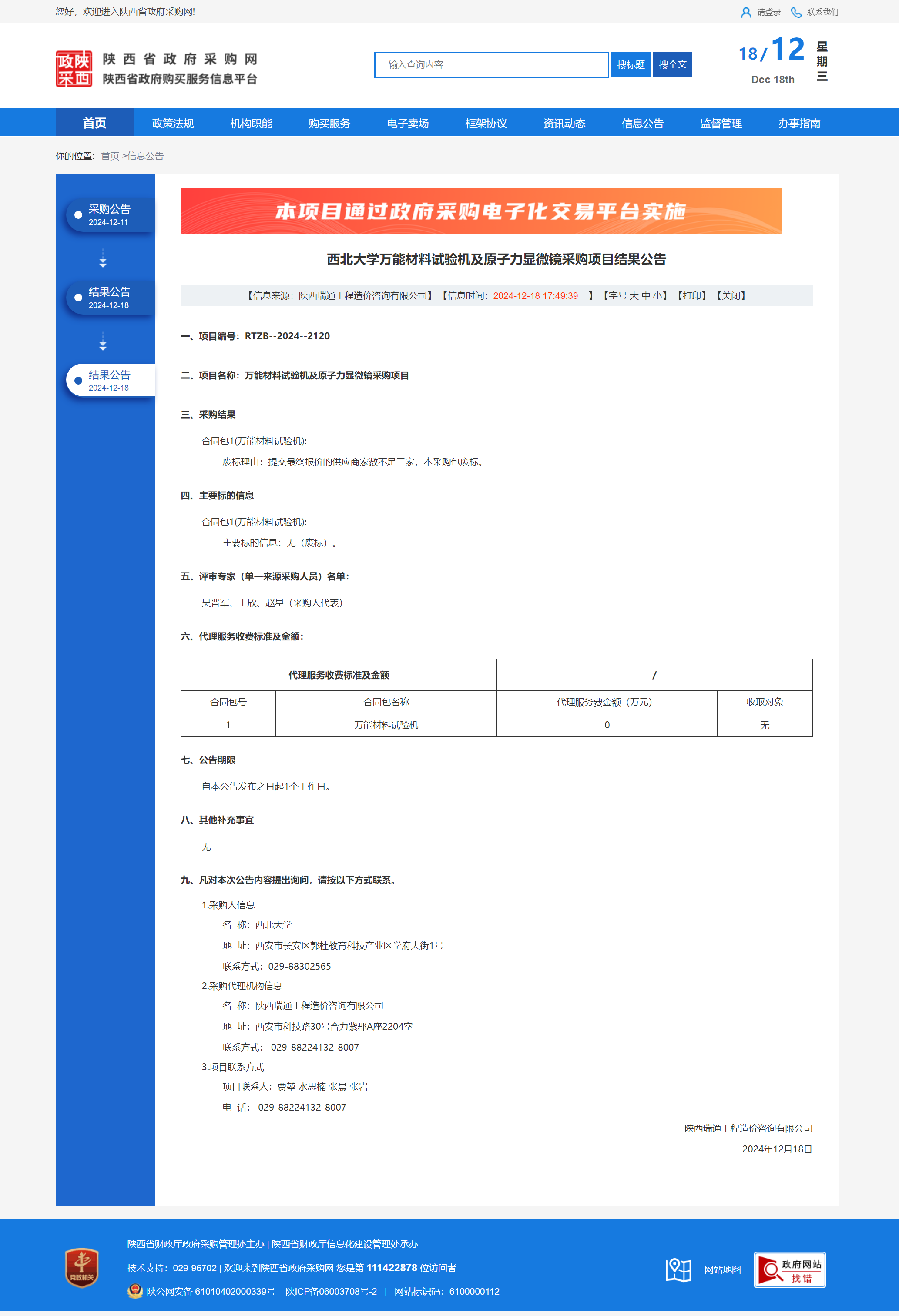 古天乐代言太阳集团城网址万能材料试验机及原子力显微镜采购项目结果公告