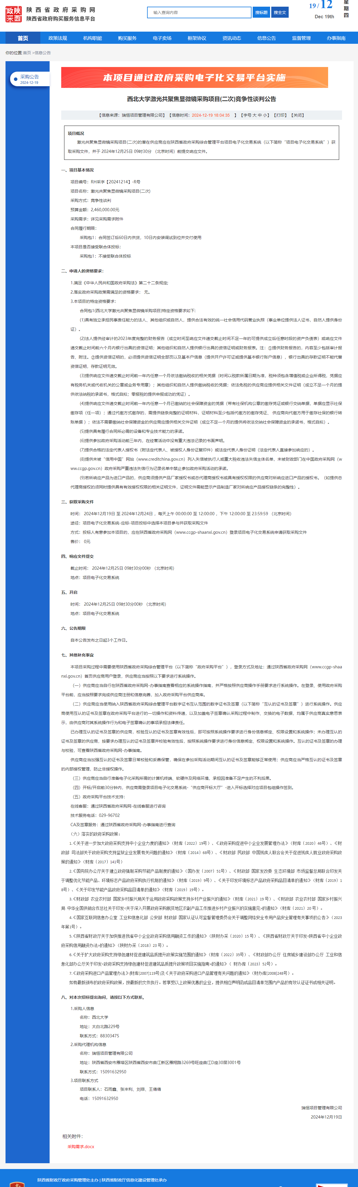 古天乐代言太阳集团城网址激光共聚焦显微镜采购项目(二次)竞争性谈判公告 作者:采购与招标办公室 编辑: 时间:2024-12-19 原公告链接:https://www.ccgp-shaanxi.gov.cn/freecms/site/shaanxi/ggxx/info/2024/8a69c95d921859f00193de53a768668a.html?noticeType=001013¬iceId=48e33407-bdf2-11ef-8063-08c0eb20c666