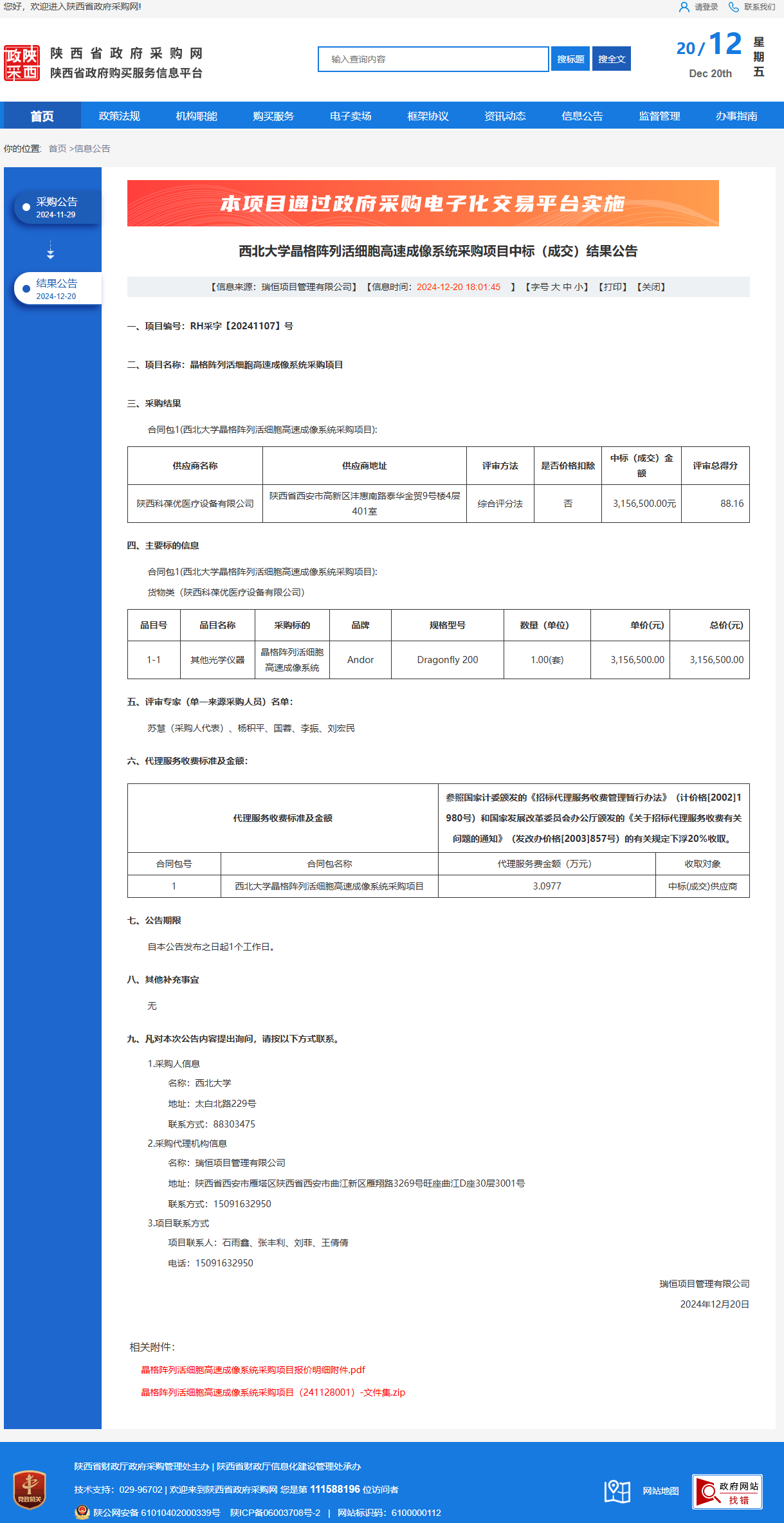古天乐代言太阳集团城网址晶格阵列活细胞高速成像系统采购项目中标(成交)结果公告 作者:采购与招标办公室 编辑: 时间:2024-12-20 原公告链接:https://www.ccgp-shaanxi.gov.cn/freecms/site/shaanxi/ggxx/info/2024/8a69c95d921859f00193e29f761501c8.html?noticeType=001021¬iceId=0e797da5-bebb-11ef-8063-08c0eb20c666