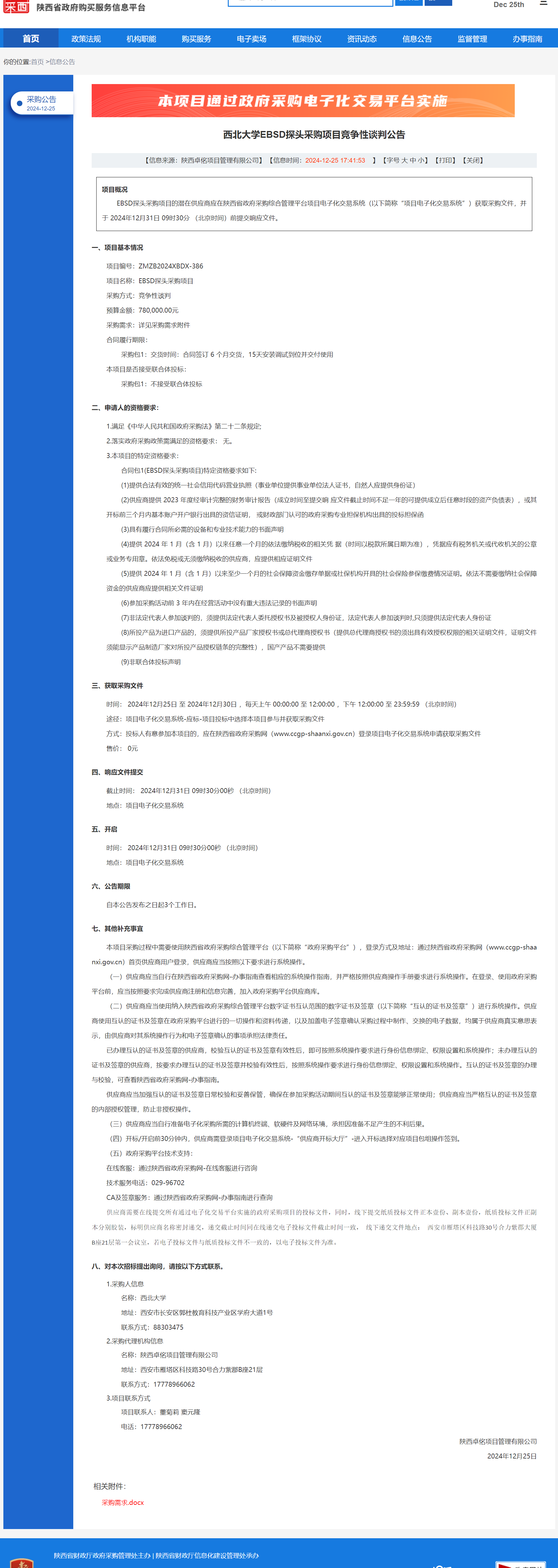 古天乐代言太阳集团城网址EBSD探头采购项目竞争性谈判公告 作者:采购与招标办公室 编辑: 时间:2024-12-25 原公告链接:https://www.ccgp-shaanxi.gov.cn/freecms/site/shaanxi/ggxx/info/2024/8a69c251921857370193fd2ded71224e.html?noticeType=001013¬iceId=1e749fa7-c2a6-11ef-8063-08c0eb20c666