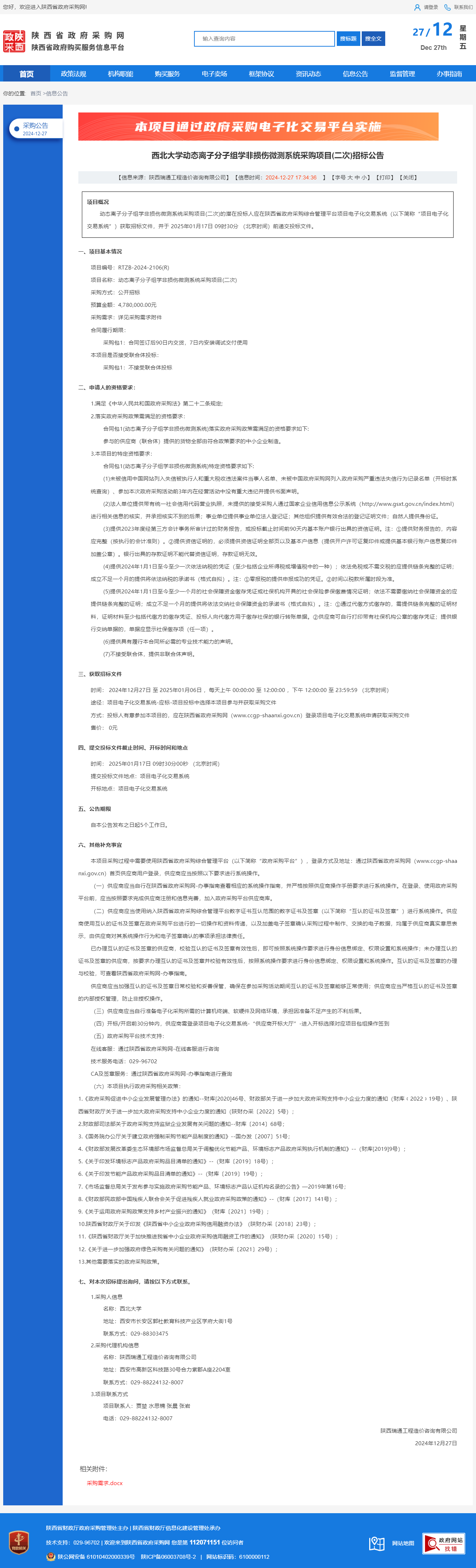 古天乐代言太阳集团城网址动态离子分子组学非损伤微测系统采购项目(二次)招标公告 作者:采购与招标办公室 编辑: 时间:2024-12-27 原公告链接:http://www.ccgp-shaanxi.gov.cn/freecms/site/shaanxi/ggxx/info/2024/8a69c5a59218576d019407700c364918.html?noticeType=001011¬iceId=6f721510-c437-11ef-8063-08c0eb20c666