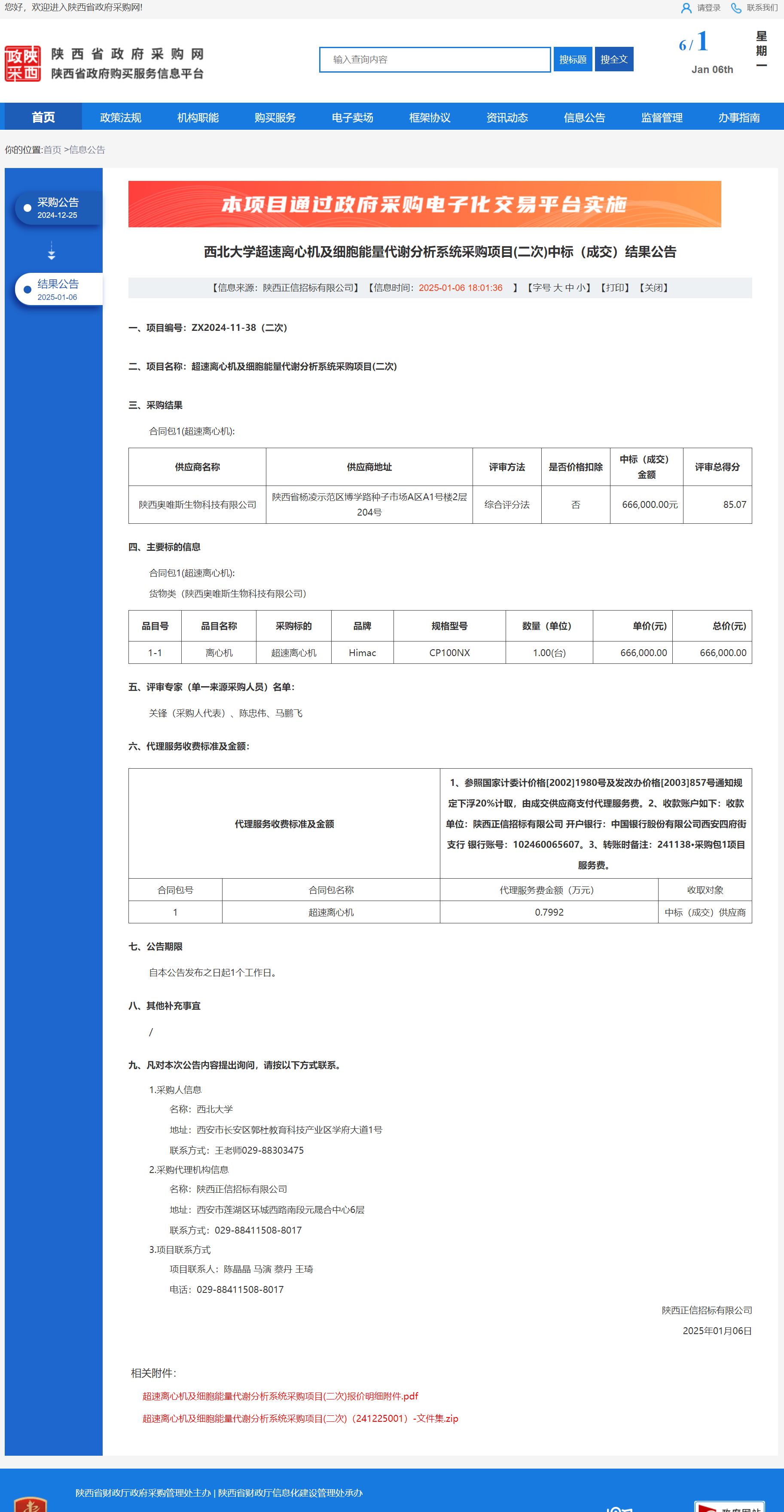 古天乐代言太阳集团城网址超速离心机及细胞能量代谢分析系统采购项目(二次)中标(成交)结果公告 作者:采购与招标办公室 编辑: 时间:2025-01-06 原公告链接:https://www.ccgp-shaanxi.gov.cn/freecms/site/shaanxi/ggxx/info/2025/8a69c2519218573701943b083d2b112d.html?noticeType=001026¬iceId=e26ca62a-cc16-11ef-8063-08c0eb20c666
