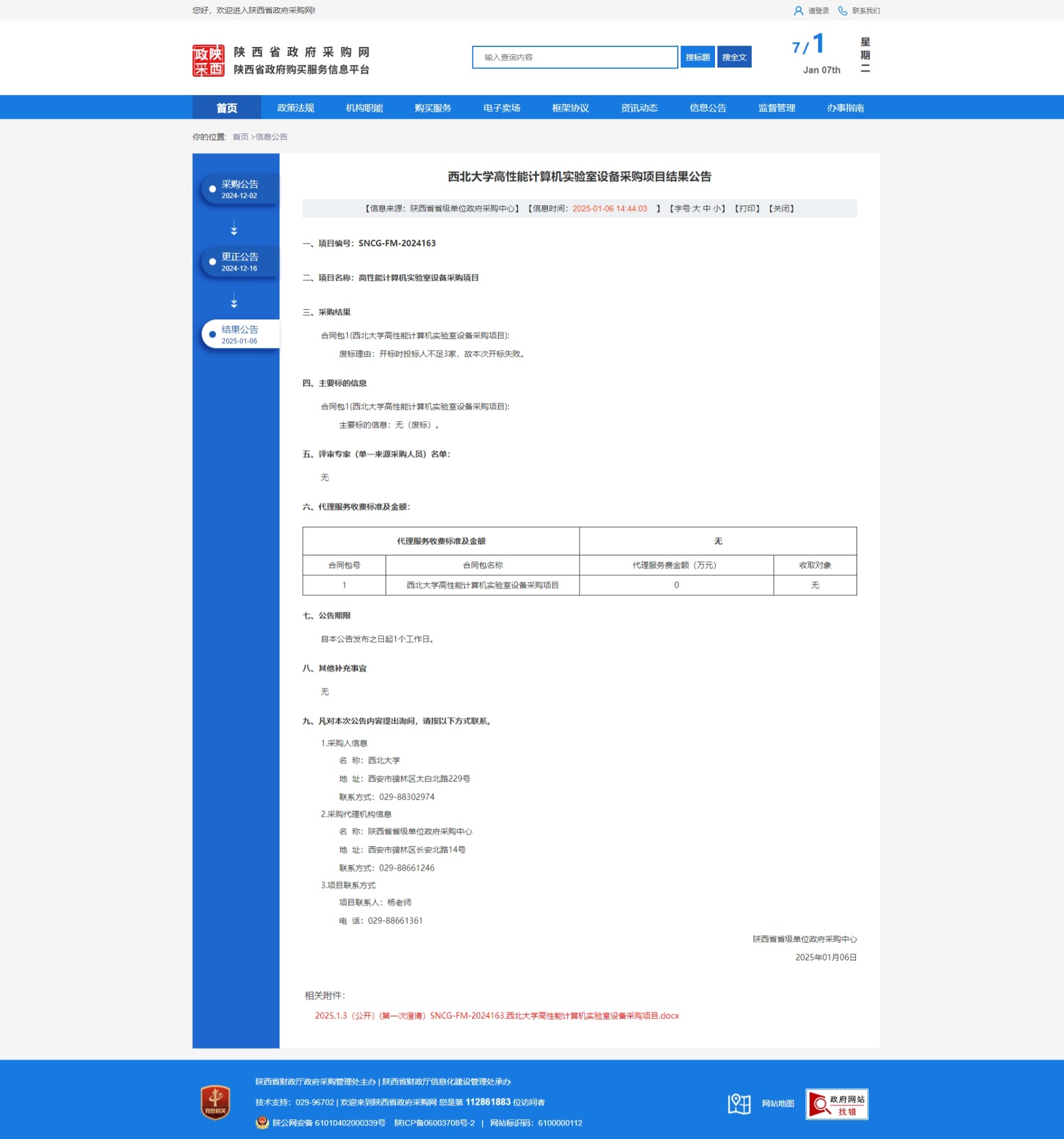 古天乐代言太阳集团城网址高性能计算机实验室设备采购项目结果公告 作者: 编辑:薛利娟 时间:2025-01-07 原公告链接:https://www.ccgp-shaanxi.gov.cn/freecms/site/shaanxi/ggxx/info/2025/8a69c95d921859f001943992fed82bb1.html?noticeType=001006¬iceId=49269ef4-cbfb-11ef-8063-08c0eb20c666