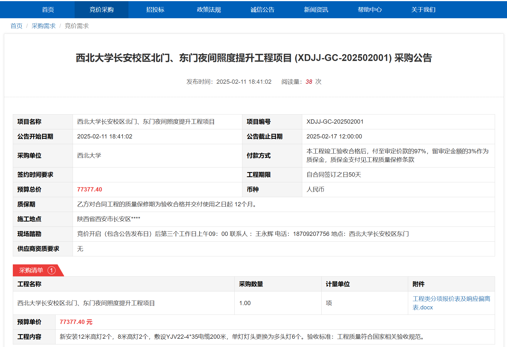 古天乐代言太阳集团城网址长安校区北门、东门夜间照度提升工程项目(XDJJ-GC-202502001)竞价采购公告 作者:采购与招标办公室 编辑: 时间:2025-02-11 原公告链接:https://www.ejingcai.com.cn/site/bidding/detail/16497