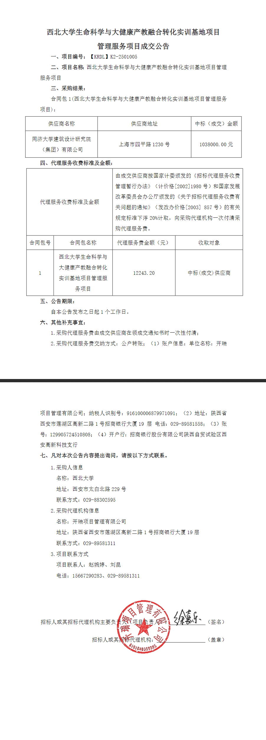 古天乐代言太阳集团城网址生命科学与大健康产教融合转化实训基地项目管理服务项目成交公告