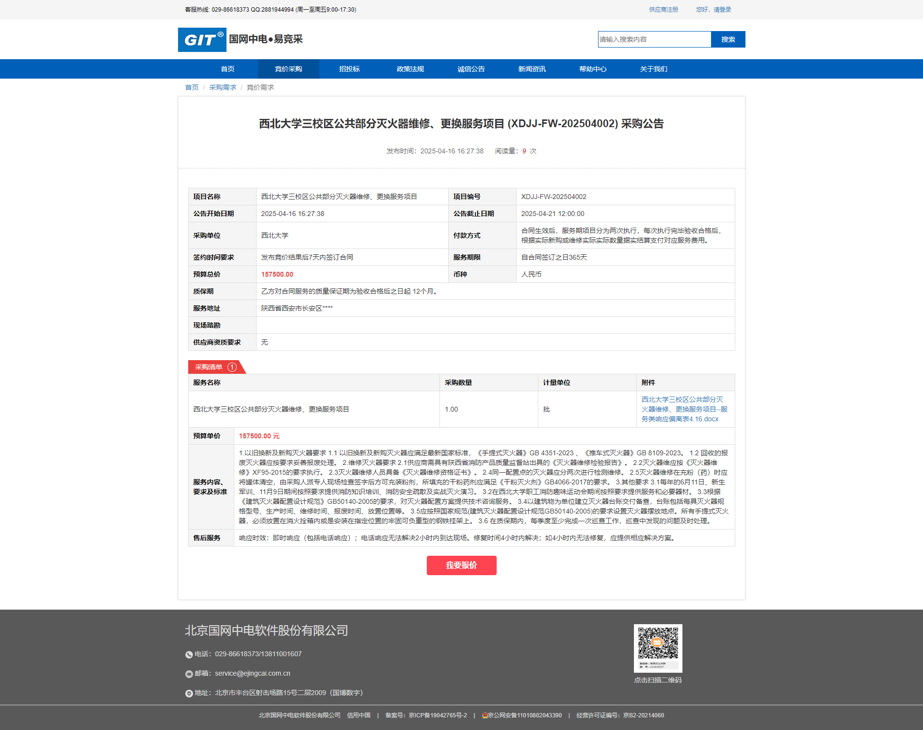 古天乐代言太阳集团城网址三校区公共部分灭火器维修、更换服务项目 (XDJJ-FW-202504002) 采购公告