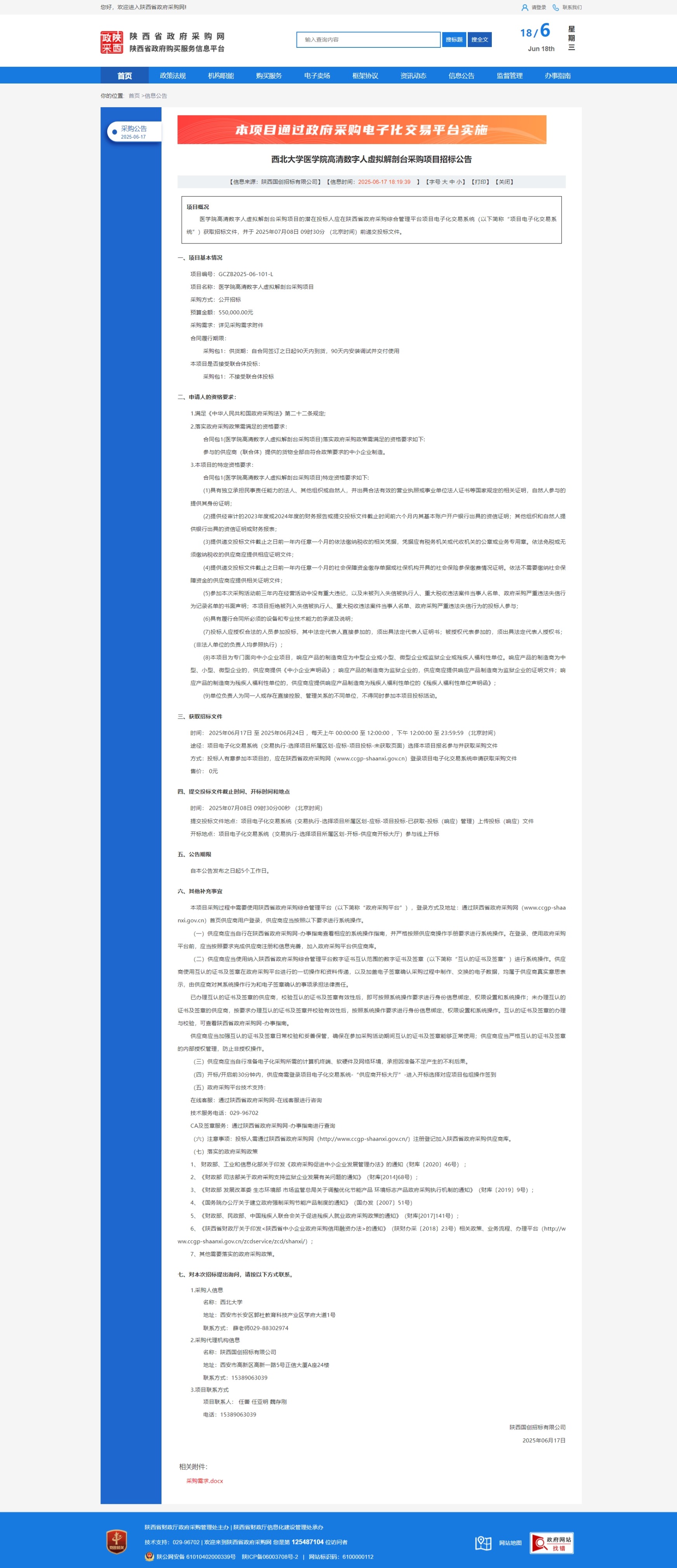 古天乐代言太阳集团城网址医学院高清数字人虚拟解剖台采购项目招标公告 作者: 编辑:采购与招标办公室 时间:2025-06-18 原公告链接:https://www.ccgp-shaanxi.gov.cn/freecms/site/shaanxi/ggxx/info/2025/8a69c0a29672060001977d5b25b77c33.html?noticeType=001011¬iceId=8a96e29e-4b66-11f0-8063-08c0eb20c666