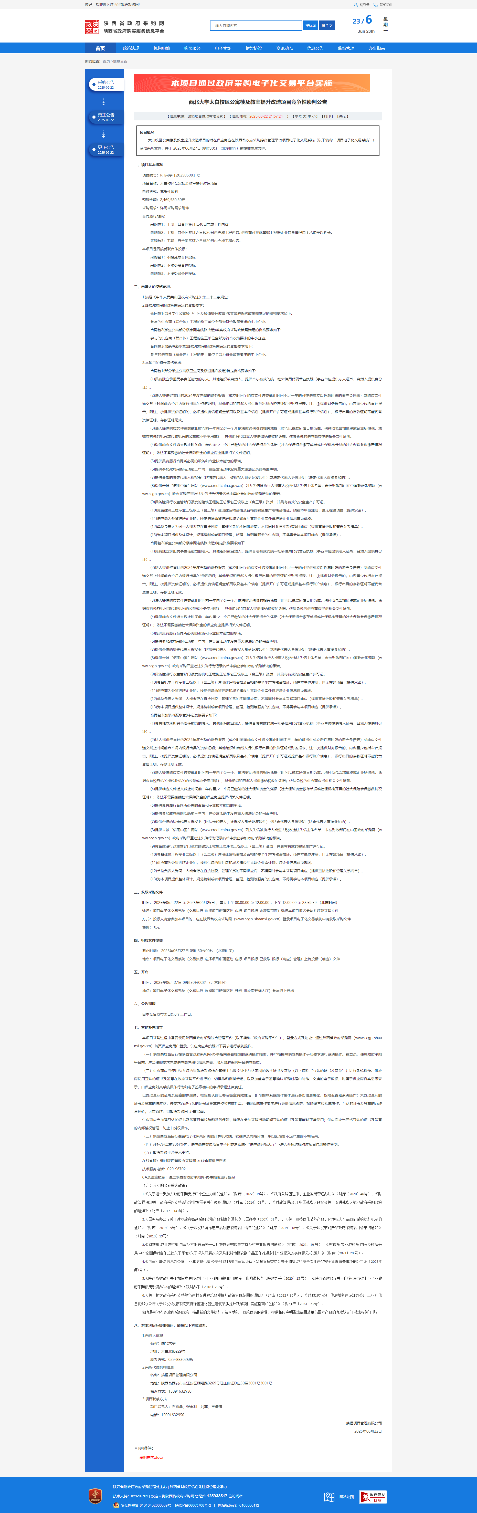 古天乐代言太阳集团城网址太白校区公寓楼及教室提升改造项目竞争性谈判公告