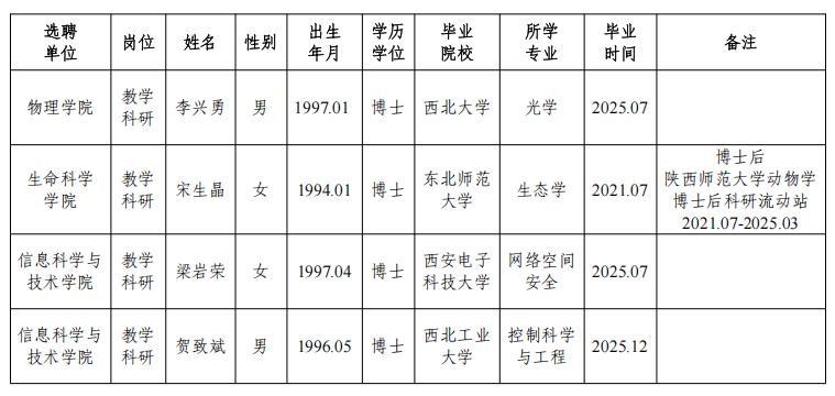 经资格审查,用人单位考查,学校专家评审会审议,太阳集团城拟确定下列人员来校工作,聘任方式为事业编正常选聘本着公平、公正、公开的原则,现将本次拟选聘人员基本情况公示如下: