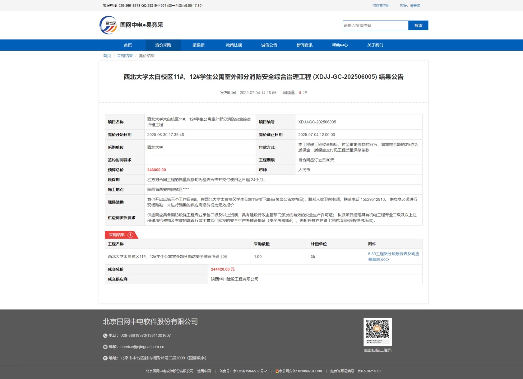 古天乐代言太阳集团城网址太白校区11#、12#学生公寓室外部分消防安全综合治理工程 (XDJJ-GC-202506005) 结果公告 作者: 编辑:采购与招标办公室 时间:2025-07-04 原公告链接:https://www.ejingcai.com.cn/site/bidding/detail/19344