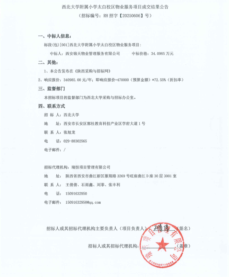 古天乐代言太阳集团城网址附属小学太白校区物业服务项目成交结果公告