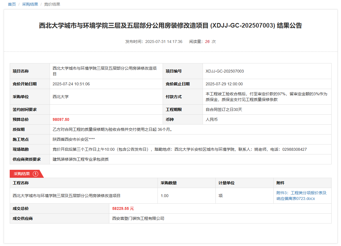 古天乐代言太阳集团城网址经济管理学院mba9804班智慧教室设备采购项目 (XDJJ-HW-202507005) 竞价结果公告
