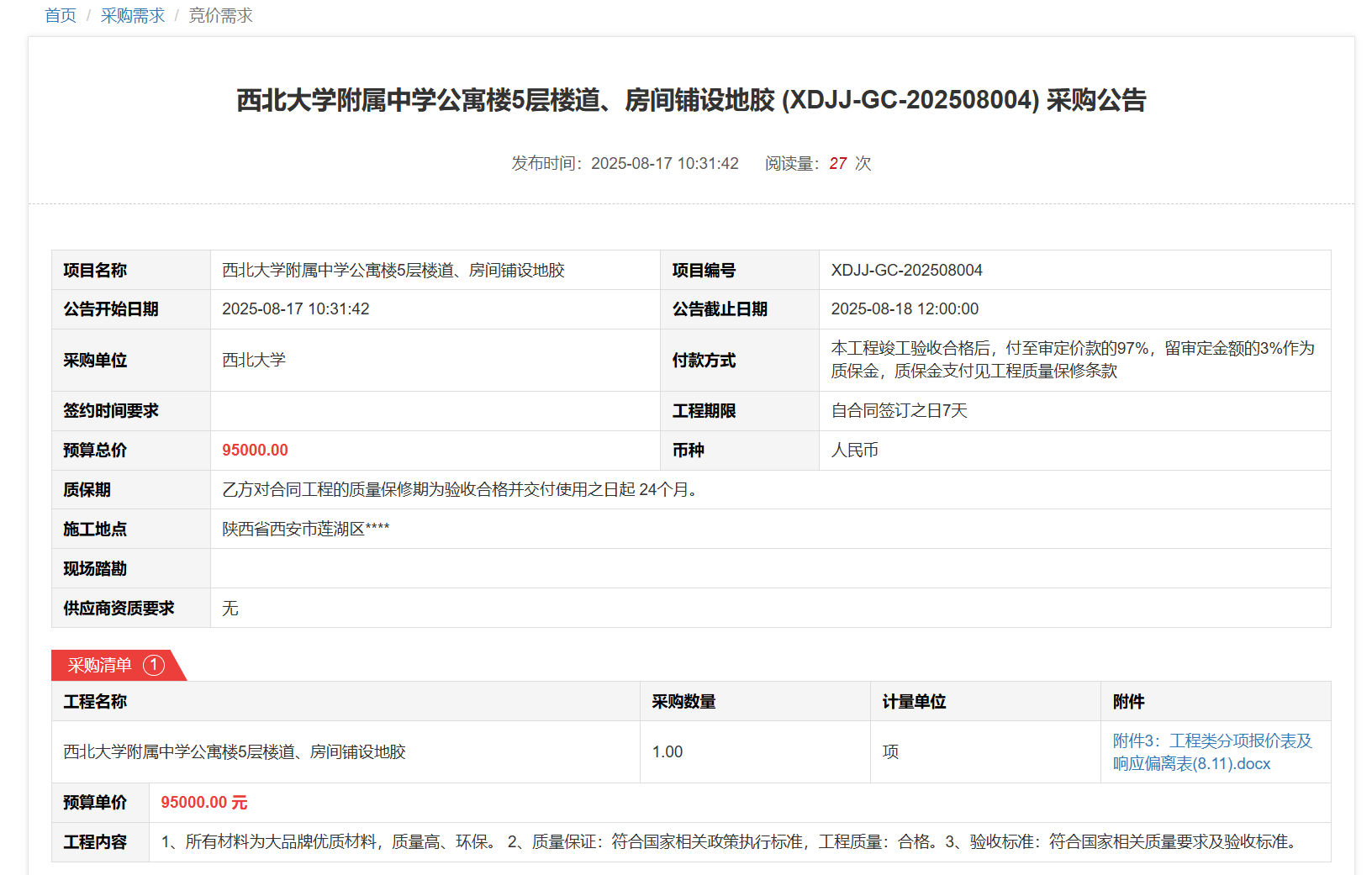 古天乐代言太阳集团城网址太白校区科研楼公共区域、教学七号楼室内照明设施更换(XDJJ-GC-202508001)竞价结果公告