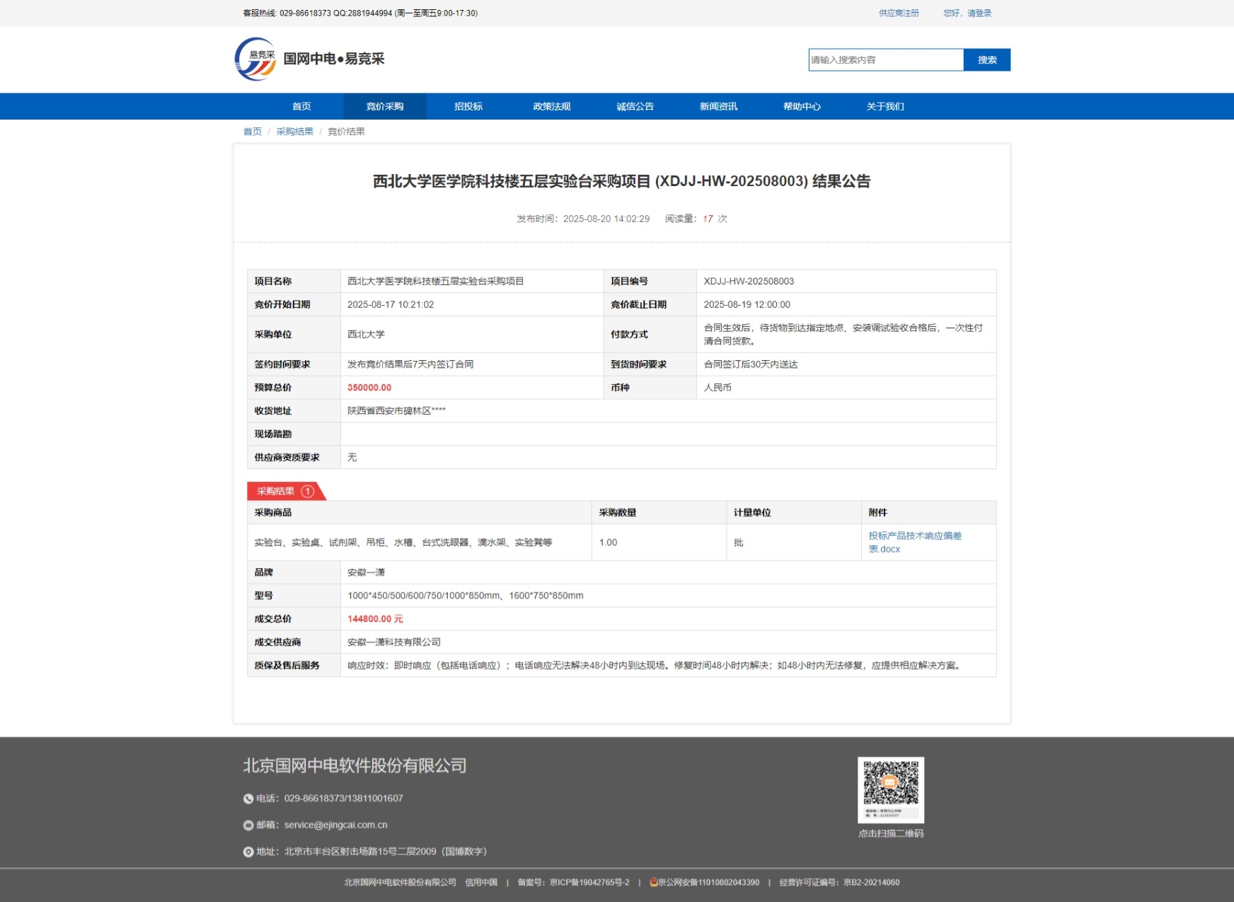 古天乐代言太阳集团城网址医学院科技楼五层实验台采购项目 (XDJJ-HW-202508003) 结果公告 作者: 编辑:采购与招标办公室 时间:2025-08-20 原公告链接:https://www.ejingcai.com.cn/site/bidding/detail/20040