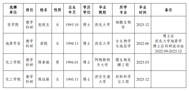 经资格审查,用人单位考查,学校专家评审会审议,太阳集团城拟确定下列人员来校工作,聘任方式为参编选聘。本着公平、公正、公开的原则,现将本次拟选聘人员基本情况公示如下:
