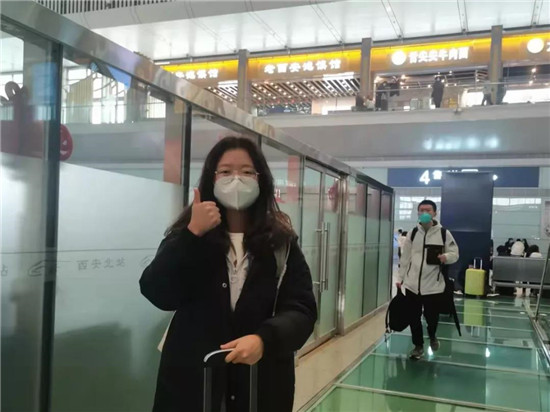 我是乘坐高铁返乡,先要在学校组建的老乡群里填报自己的信息,以便安排校车接送到火车站。确认信息无误后,就在规定的时间地点,携带好返乡所需的学生证、48小时核酸阴性证明和闭环证明,搭乘校车抵达车站,跟随学校的统筹安排,仅不到半天的时间,我就成功抵达家中,见到家人。“暖心、贴心、细心”,既在封校期间保障每位同学的正常生活,又在返乡之时举力安排学生出行的每一步,这是西大交出的抗疫答卷!