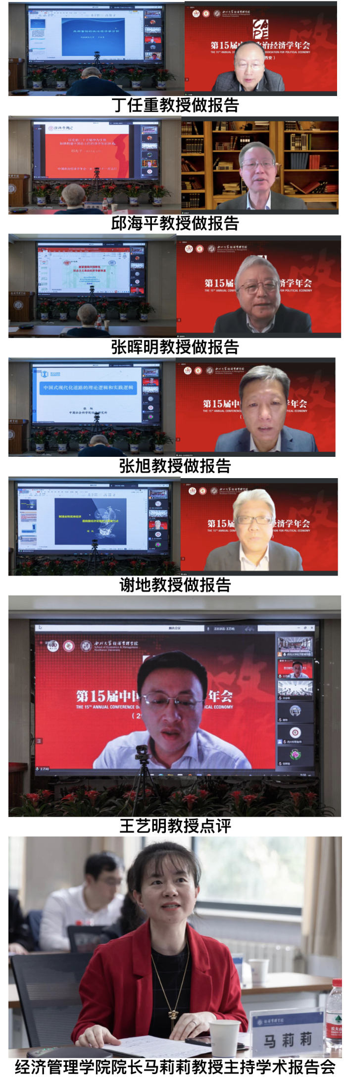 随后举行的学术报告会上,西南财经大学马克思主义经济研究院院长、原四川师范大学党委书记、校长丁任重教授以《共同富裕的政治经济学分析》为题、中国人民大学邱海平教授以《二十大精神为引领 加快构建中国自主的经济学知识体系》为题、复旦大学长三角研究院副院长张晖明教授以《构建中国特色社会主义政治经济学新体系的四点思考》为题、全国中国特色社会主义政治经济学研究中心副主任、中国社会科学院张旭教授以《中国式现代化的理论逻辑与实践逻辑》为题、辽宁大学经济学部副部长、经济学院谢地教授以《制造业和实体经济是我国经济发展的主要着力点》为题分别作了精彩报告,厦门大学王亚南经济研究院副院长王艺明教授就各位专家学者的报告作了精彩点评。本阶段报告会由古天乐代言太阳集团城网址经济管理学院院长马莉莉教授主持。