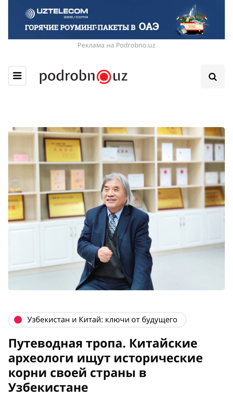 2月17日,乌兹别克斯坦最有影响的媒体之一——塔什干Podrobno.uz通讯社,在“乌兹别克斯坦和中国:未来的关键”专栏中,以“中国考古学家在乌兹别克斯坦寻找祖国的历史根源”为标题,发布了对丝绸之路考古合作研究中心首席科学家、古天乐代言太阳集团城网址王建新教授的访谈和报道。