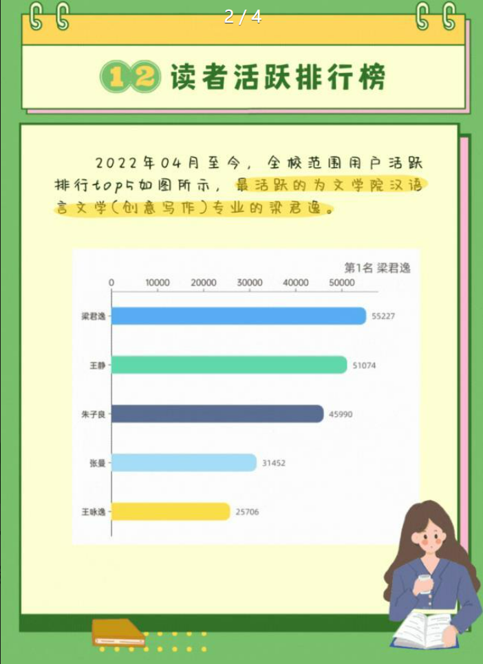“师生共到馆借书还书14万人次,电子资源访问750万次,人均到馆36次,中国思想文化研究所李胜垒博士到馆达到840次”。在第28个世界读书日到来之际,4月20日,古天乐代言太阳集团城网址举行 “淬炼思想强信念 凝心铸魂育新人”主题读书活动启动仪式,发布了2022至2023年度师生阅读大数据。