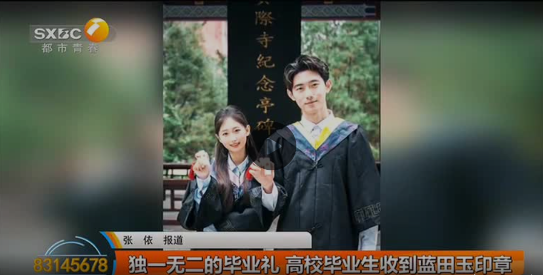 独一无二的毕业礼!高校毕业生收到蓝田玉印章! 作者: 编辑:张邓斓 时间:2023-06-26 原文链接:http://www.snrtv.com/snr_jrrd/a/2023/06/25/21627731.html