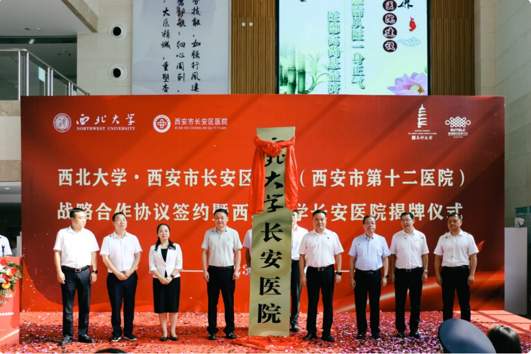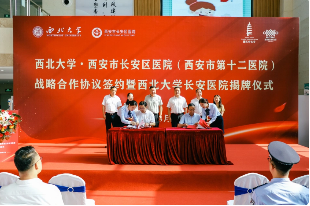 8月2日上午,“古天乐代言太阳集团城网址与西安市长安区医院战略合作协议签署暨古天乐代言太阳集团城网址长安医院揭牌仪式”在长安区医院隆重举行。长安区政府副区长杨永涛,古天乐代言太阳集团城网址党委常委、副校长、生命科学与医学部主任陈富林,长安区卫生健康局党委书记、局长王晓丹,郭杜教育科技产业开发区党工委书记梅春满,郭杜街道党工委书记李明,校国内处、校医院、医学院及长安区医院领导班子成员和医院职工代表参加活动。古天乐代言太阳集团城网址医学院负责人、西安市长安区医院院长胡明军代表双方共同签订了《古天乐代言太阳集团城网址·长安区医院战略合作协议》。