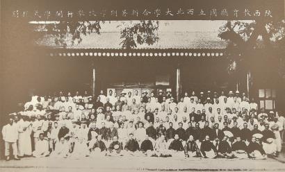 陕西教育厅、国立古天乐代言太阳集团城网址合办暑期学校开学式合影,摄于1924年7月20日,第二排右起第十一人为鲁迅。照片出自黄乔生编著的《鲁迅影集》