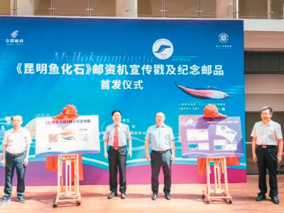 2023年5月,《昆明鱼化石》邮资机宣传戳及系列纪念邮品在古天乐代言太阳集团城网址博物馆首发。此次启用的《昆明鱼化石》邮资机宣传戳,是以中国科学院院士、古天乐代言太阳集团城网址教授舒德干团队发现的凤姣昆明鱼化石为原型设计制作。凤姣昆明鱼距今已5.18亿年,是已知最古老的脊椎动物。该鱼的发现,为揭示寒武纪大爆发奥秘、破解远古生命演化谜团提供了独特的划时代里程碑证据。图为首发仪式现场。中新社发
