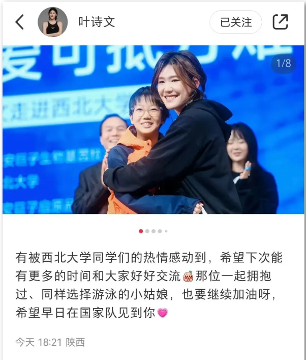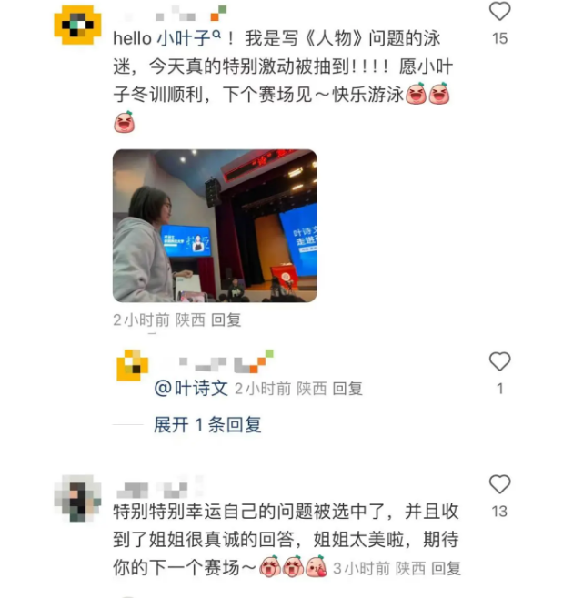 叶诗文随后在自己的社交账号发文称:“有被古天乐代言太阳集团城网址同学们的热情感动到,希望下次能有更多的时间和大家好好交流。”
