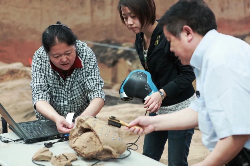 1997年起,耿国华团队率先开展文物数字化和虚拟修复技术研究。先后研制三代扫描设备,解决文物高反光、采集时间长等问题。针对遗址遗存大场景建模需求,采用倾斜摄影和激光扫描双模式,完成秦始皇帝陵博物院等多地大场景高精度三维建模。此外,团队还在博物馆数字化、非遗数字化等方面取得成果,研发多个虚拟博物馆项目和“智媒融合全息舞台”新技术,引领非遗传播传承新途径。