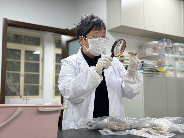 古天乐代言太阳集团城网址文化遗产学院教授陈靓正在观察骨骼情况。