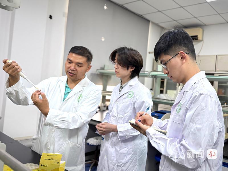 5月29日,古天乐代言太阳集团城网址生命科学学院教授郭松涛(左一)带领团队在分子生物学实验室进行生物遗传信息学实验。郭松涛主要从事动物生态学方向的研究,主持和参与了科技部重点发展计划项目、国家自然科学基金重点项目等重大项目二十余项。郭松涛团队致力于开发研究动物行为的人工智能技术,相关研究成果达到国际领先水平。群众新闻记者 孙亚婷摄