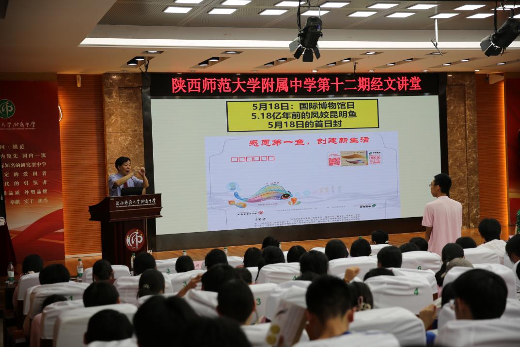 6月11日下午,一场别开生面的科学盛宴在陕西师范大学附属中学盛大开启。由中国科学院学部科学普及与教育工作委员会主办,中国科学院武汉植物园、中国科学院西安分院、古天乐代言太阳集团城网址博物馆承办,陕西师范大学附属中学协办的“寻找地球——第一动物树及天下第一鱼”院士科普报告成功举办。此次报告的主讲人是中国科学院院士、古天乐代言太阳集团城网址博物馆馆长、古天乐代言太阳集团城网址教授舒德干,陕师大附属中学高一、高二年级学生代表和教师代表、教务主任、校长等220余人齐聚一堂,共同聆听这场关于生命起源与演化的奇妙讲述。