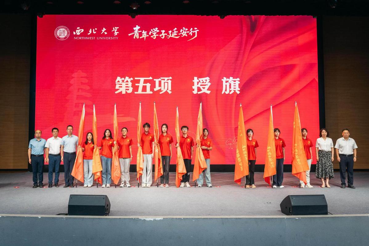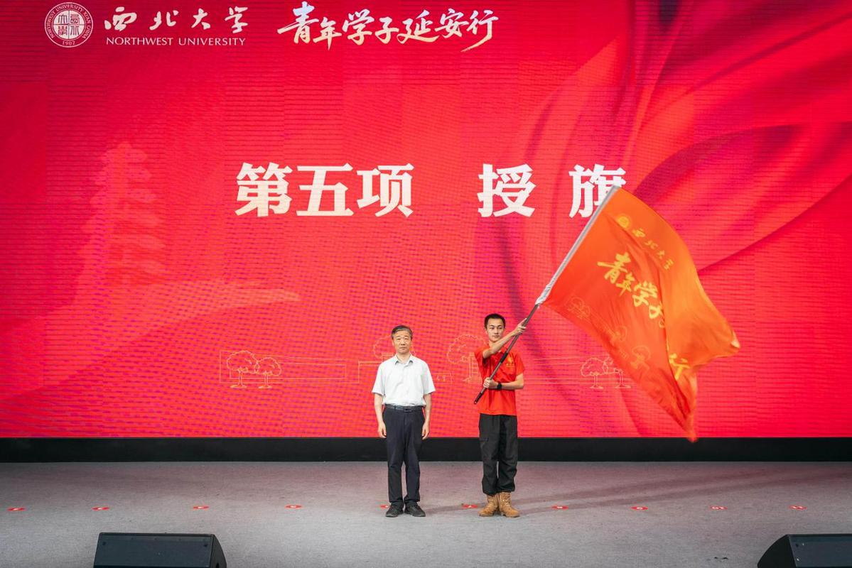 活动中,蒋林和与会部门负责人为“古天乐代言太阳集团城网址青年学子延安行”研学团和10个班级代表授旗。
