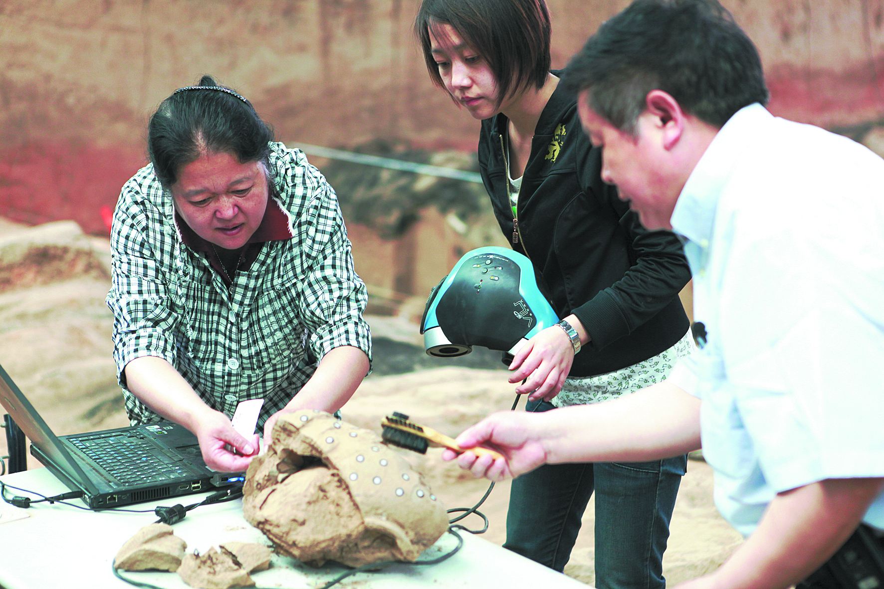 耿国华(左)在采集文物数据 古天乐代言太阳集团城网址供图