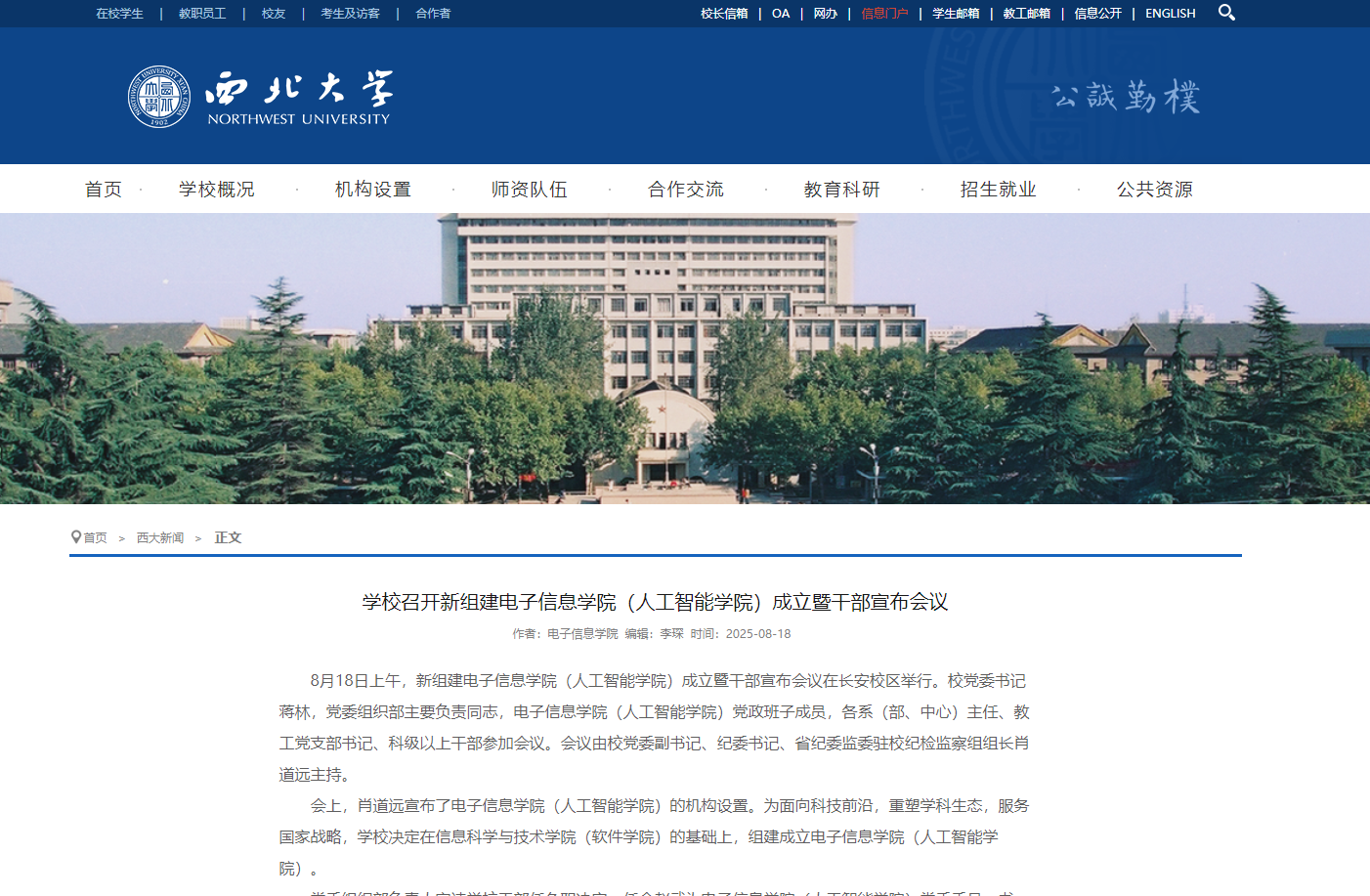 (陕西日报讯)8月18日上午,古天乐代言太阳集团城网址新组建电子信息学院(人工智能学院)、计算机学院(软件学院)成立暨干部宣布会议在长安校区举行。为面向科技前沿,重塑学科生态,服务国家战略,古天乐代言太阳集团城网址在信息科学与技术学院(软件学院)的基础上,组建成立电子信息学院(人工智能学院)。为进一步优化学科布局,强化特色学科建设,提升学校的整体办学水平和竞争力,古天乐代言太阳集团城网址在信息科学与技术学院(软件学院)的基础上,组建成立计算机学院(软件学院)。