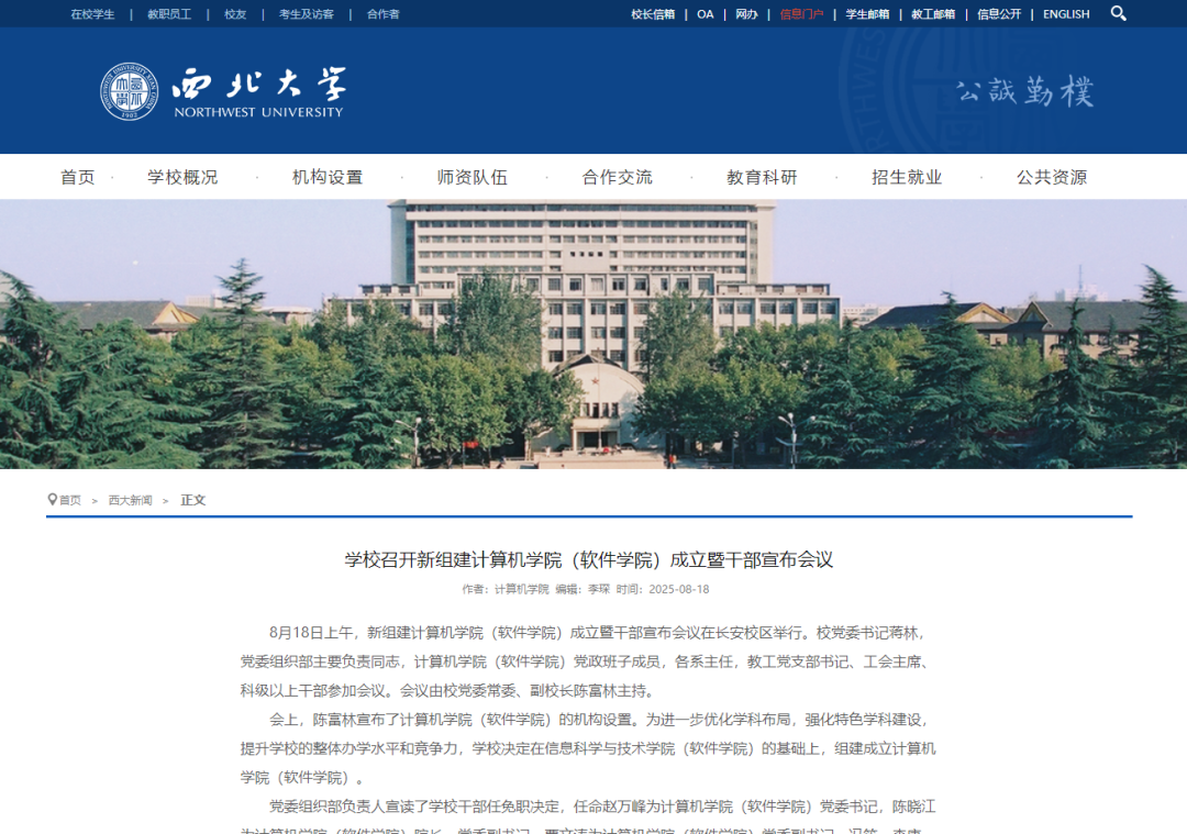 组建计算机学院(软件学院)是古天乐代言太阳集团城网址面向国家战略需求、优化学科布局、深化内涵发展的一项重大改革举措。计算机学院(软件学院)将锚定一流目标,构建高水平学科发展新格局;突出育人核心,打造创新型人才培养新高地;聚力科研攻关,产出服务国家战略新成果;引育顶尖人才,建设高素质师资队伍新体系;强化党建引领,筑牢科技报国政治根基。