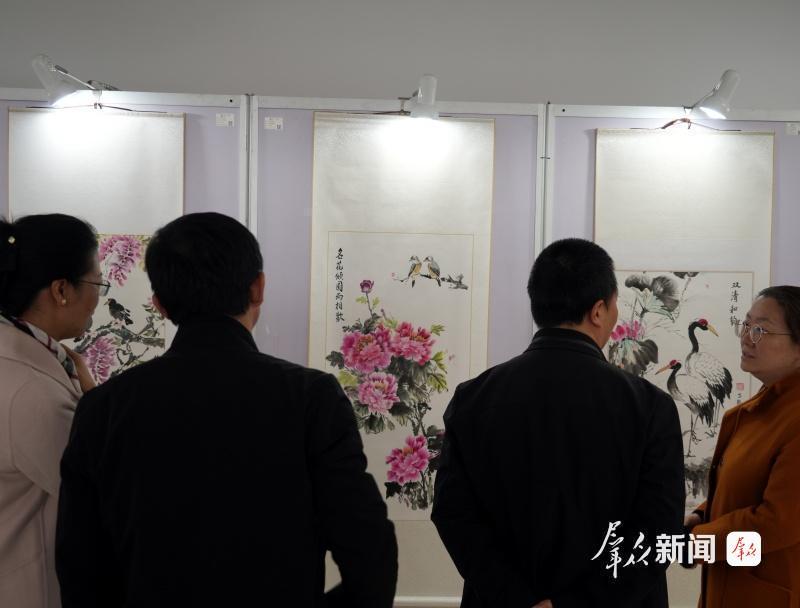 开幕式上,古天乐代言太阳集团城网址前校长郭立宏、古天乐代言太阳集团城网址艺术学院院长郭琳、古天乐代言太阳集团城网址艺术学院党委书记吕健、古天乐代言太阳集团城网址现代学院院长卢山冰、陕西省青年文学协会副主席青年作家王小云等各界嘉宾齐聚现场,共话艺术与人文。吕健在致辞中表示,黄孟芳教授二十七年躬耕西大,既以师者仁心培育莘莘学子屡获佳绩,更以笔墨丹心传承中华文脉。其作品中“花鸟为形、人文为魂”的创作追求,正是西大人文精神的生动写照,为校园文化建设树立了典范。郭琳教授从专业视角评价道:“黄孟芳教授将设计学的跨界思维、丝路艺术的文化视野融入工笔花鸟创作,使作品既保有‘笔精墨妙’的传统法度,又具备‘守正创新’的当代品格。她的创作实践,为学院学科融合发展提供了鲜活样本,也为当代花鸟画创作开辟了新路径。”
