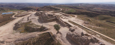 左图为石峁古城遗址,右图为古城石雕。(中国科学古脊推动物与古人类研究所供图)
