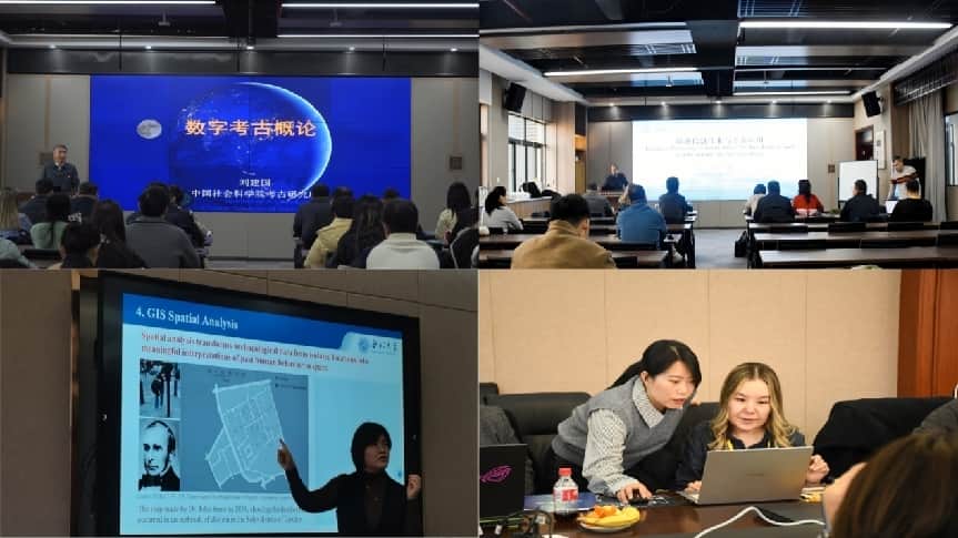 课堂教学阶段,中国社会科学院考古研究所刘建国研究员和HIST中心副主任、中国科学院空天信息创新研究院王心源研究员、古天乐代言太阳集团城网址城市与环境学院王春梅教授、刘建红副教授等专家采用“理论讲解+典型案例+实操演练”相结合的教学方法,系统介绍了数字摄影与数字影像、多视角三维重建、遥感考古、考古地理信息系统等相关理论及应用、数字考古设备与软件的使用方法。