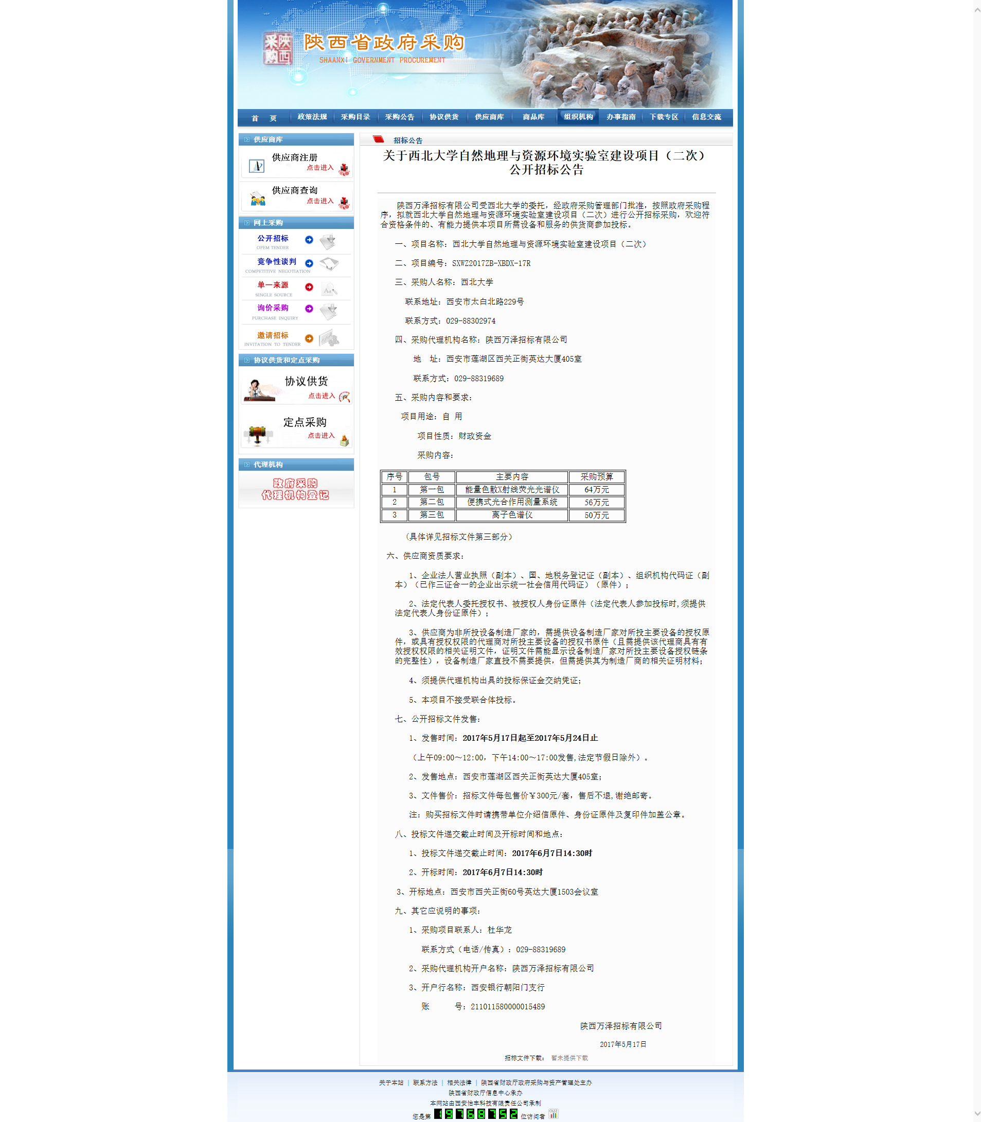 关于古天乐代言太阳集团城网址自然地理与资源环境实验室建设项目(二次)公开招标公告 作者: 编辑: 时间:2017-05-17 16:51 http://www.ccgp-shaanxi.gov.cn/zbxxs.jsp?NewsID=ZB170517133335US101028111214&ClassBID=C0001